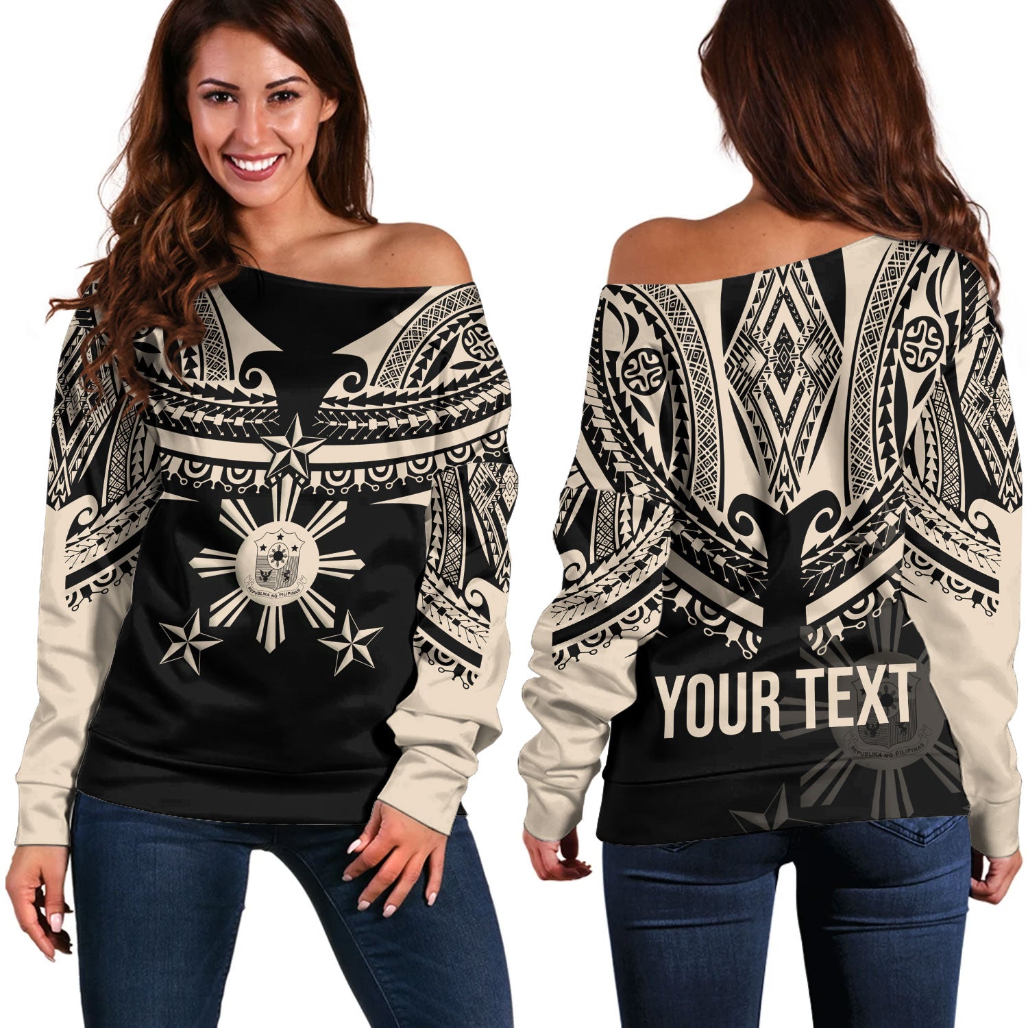 Philippines Filipinos Custom Personalised Off Shoulder Sweatshirt Filipinos Coat Of Arms Tribal Tattoo Style