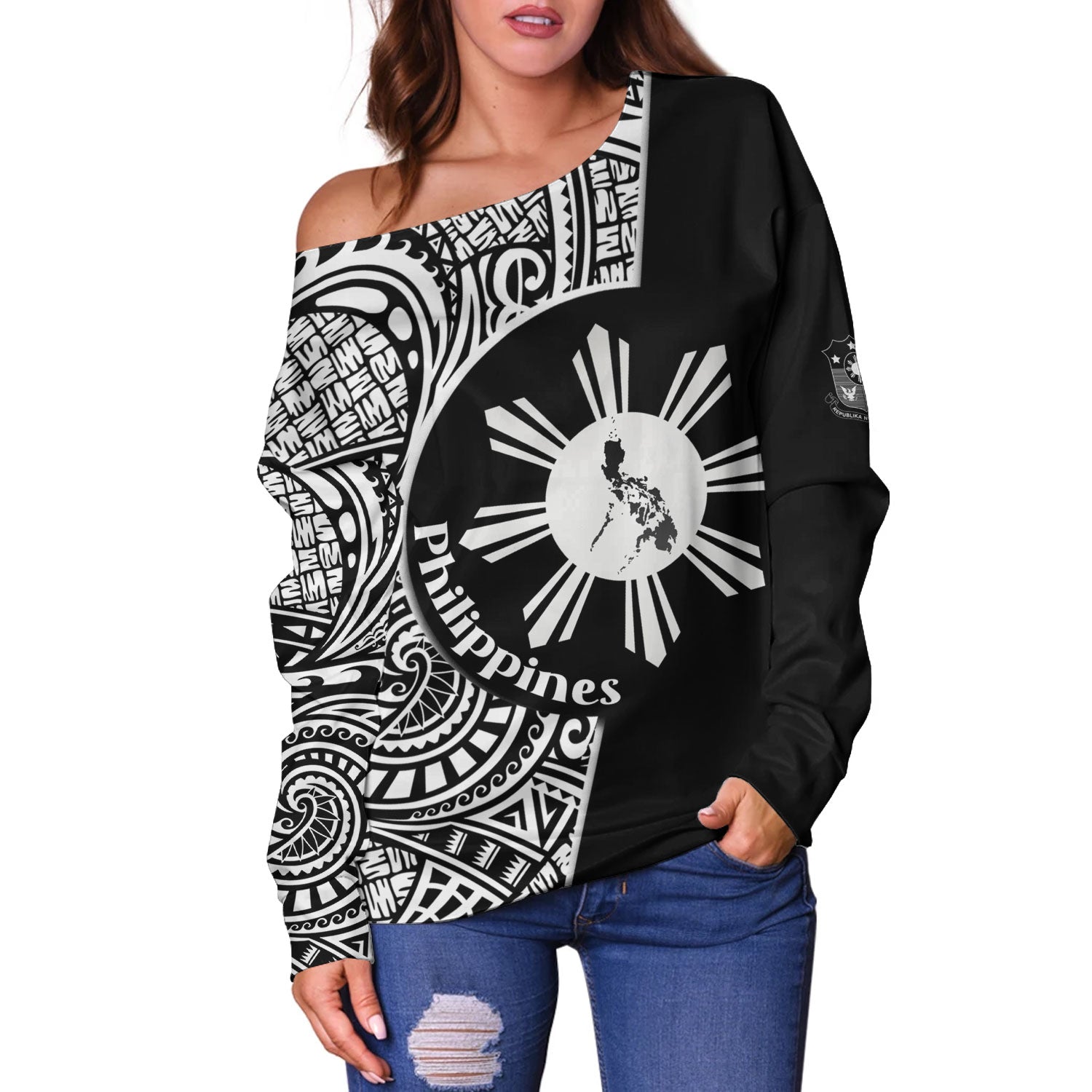 Philippines Filipinos Off Shoulder Sweatshirt Sun And Map Lauhala Patterns Style