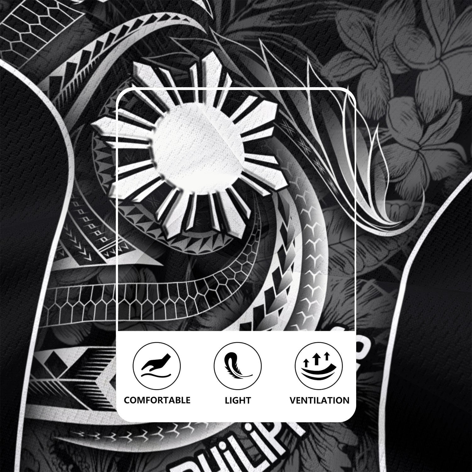 Philippines Filipinos Rugby Jersey Sun Tribal Patterns Tropical Flowers Curve Style