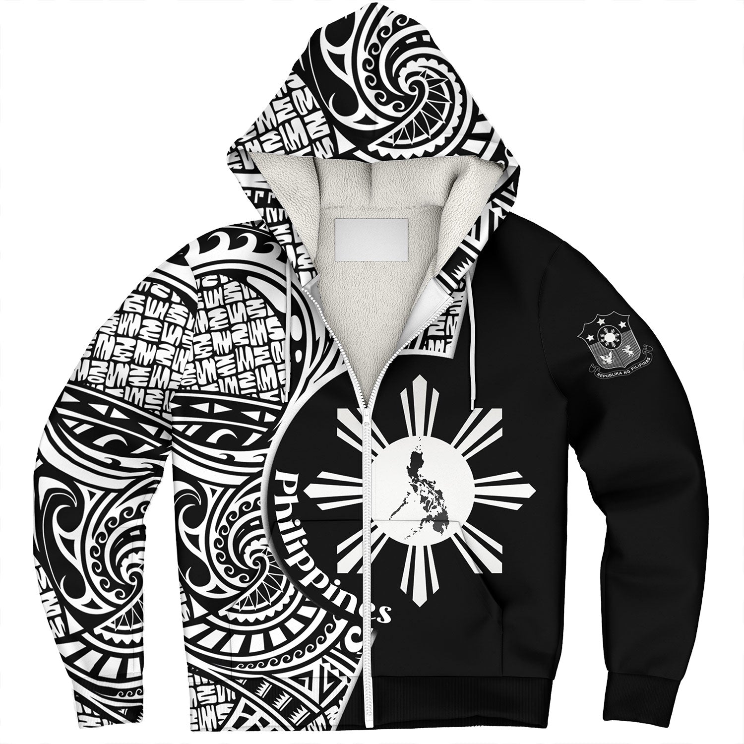 Philippines Filipinos Custom Personalised Sherpa Hoodie Sun And Map Lauhala Patterns Style