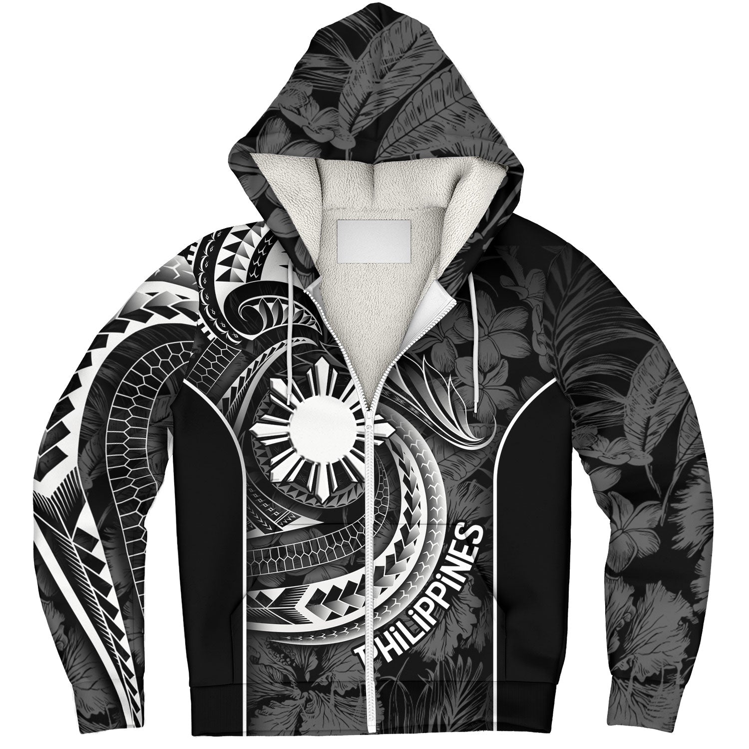 Philippines Filipinos Sherpa Hoodie Sun Tribal Patterns Tropical Flowers Curve Style