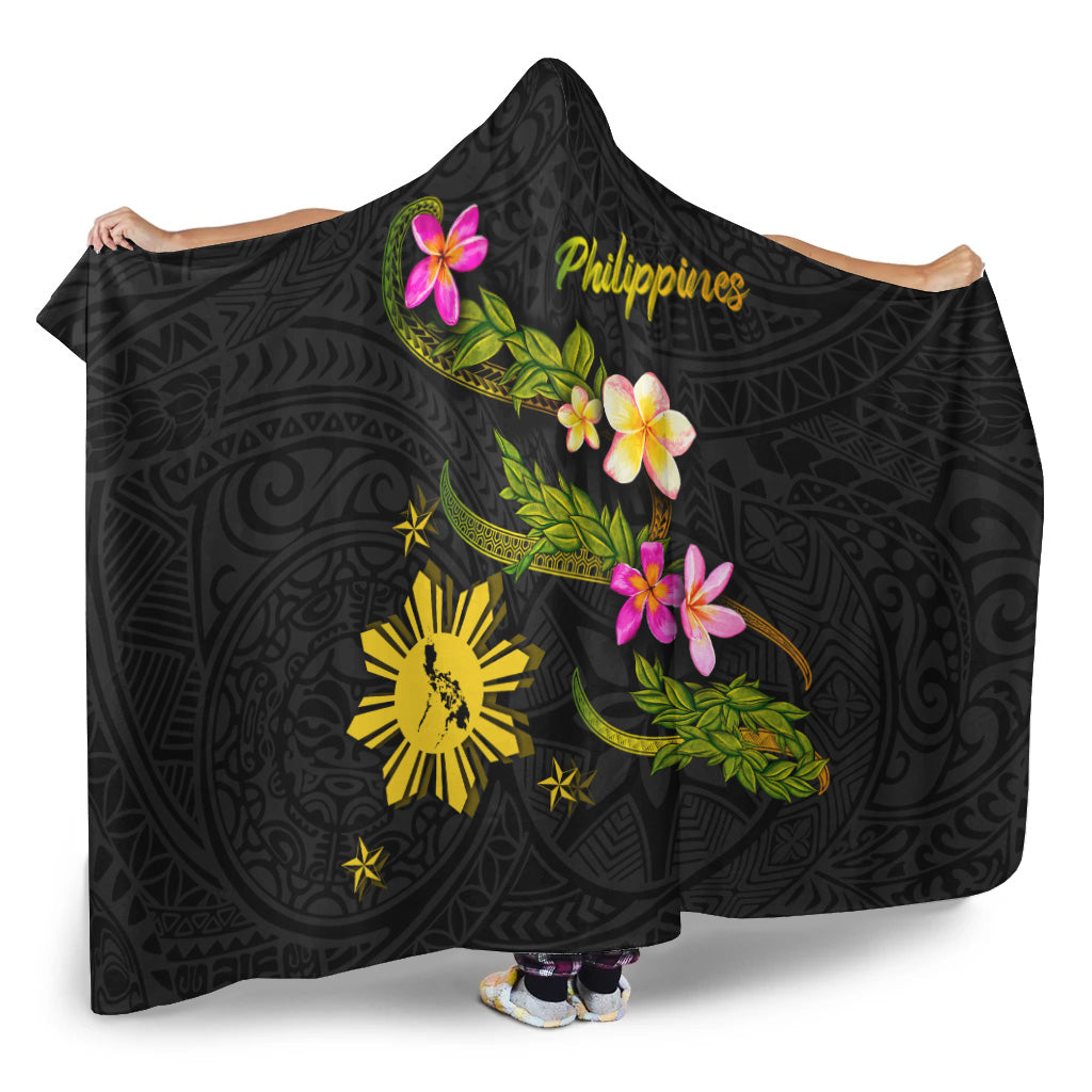 Philippines Filipinos Hooded Blanket Philippines Sun And Map Plumeria Tribal