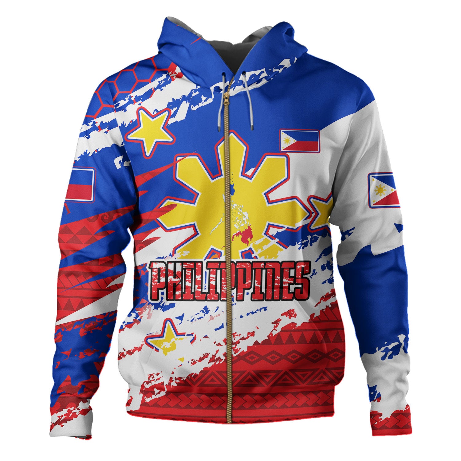 Philippines Filipinos Hoodie Custom Filipino Sun 3 Stars Bicolor Flag Tribal Grunge Style