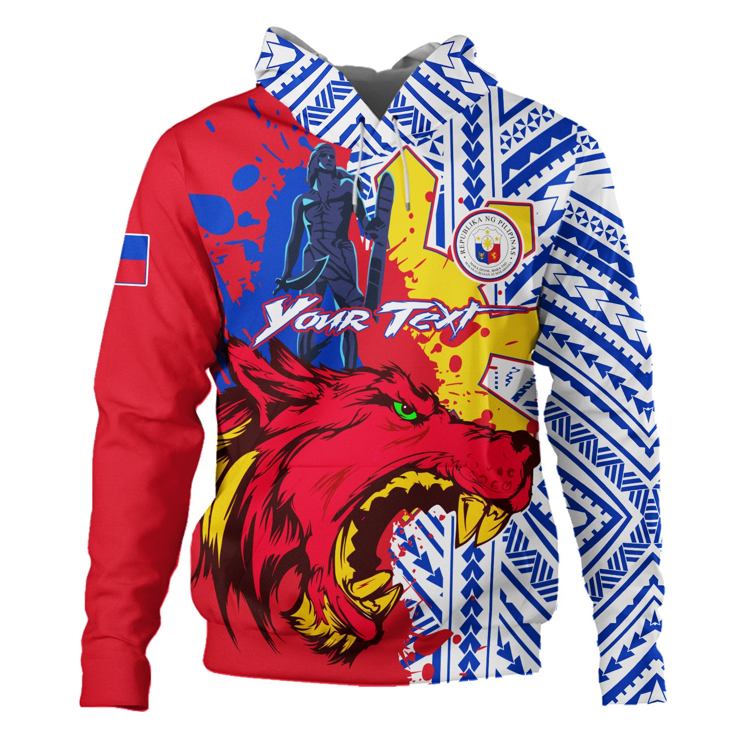 Philippines Filipinos Hoodie Custom Lapu-Lapu And The Wolf Tribal Polynesian Style