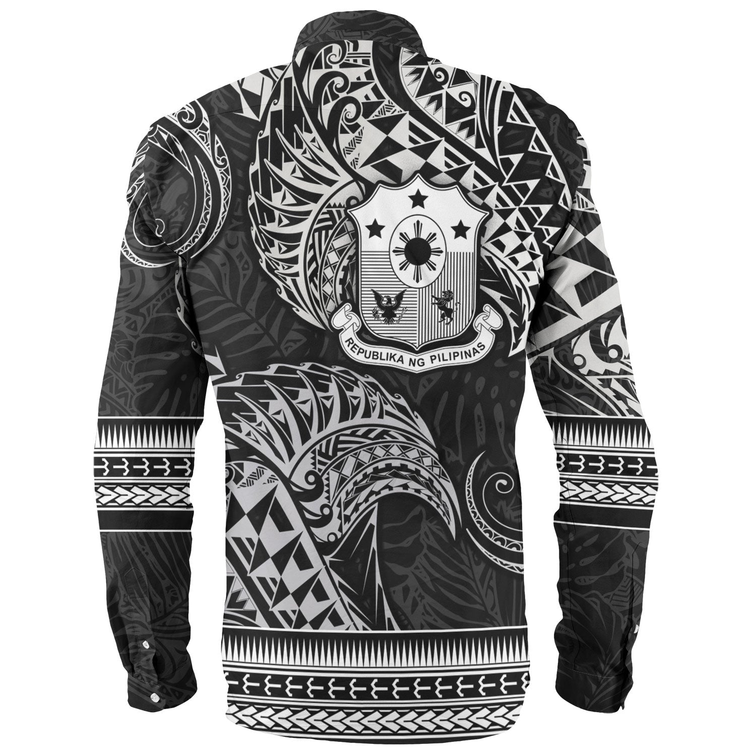 Philippines Filipinos Long Sleeve Shirt Filipino Coat Of Arms With Leaves and Tribal Patterns