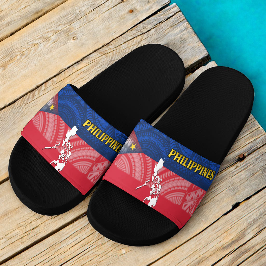 Philippines Filipinos Map And Flag Color Style Slide Sandals