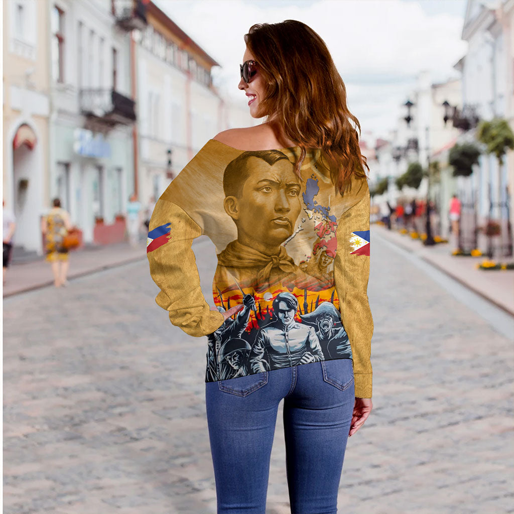 Philippines Filipinos Off Shoulder Sweatshirt National Heroes Flag Eagle