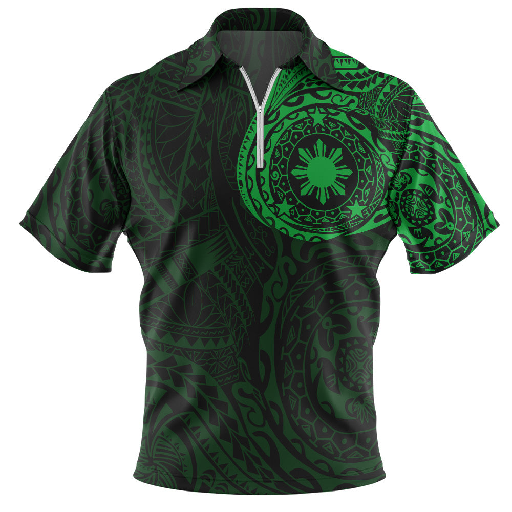 Philippines Filipinos Polynesian Tattoo Style Zip Polo Shirt