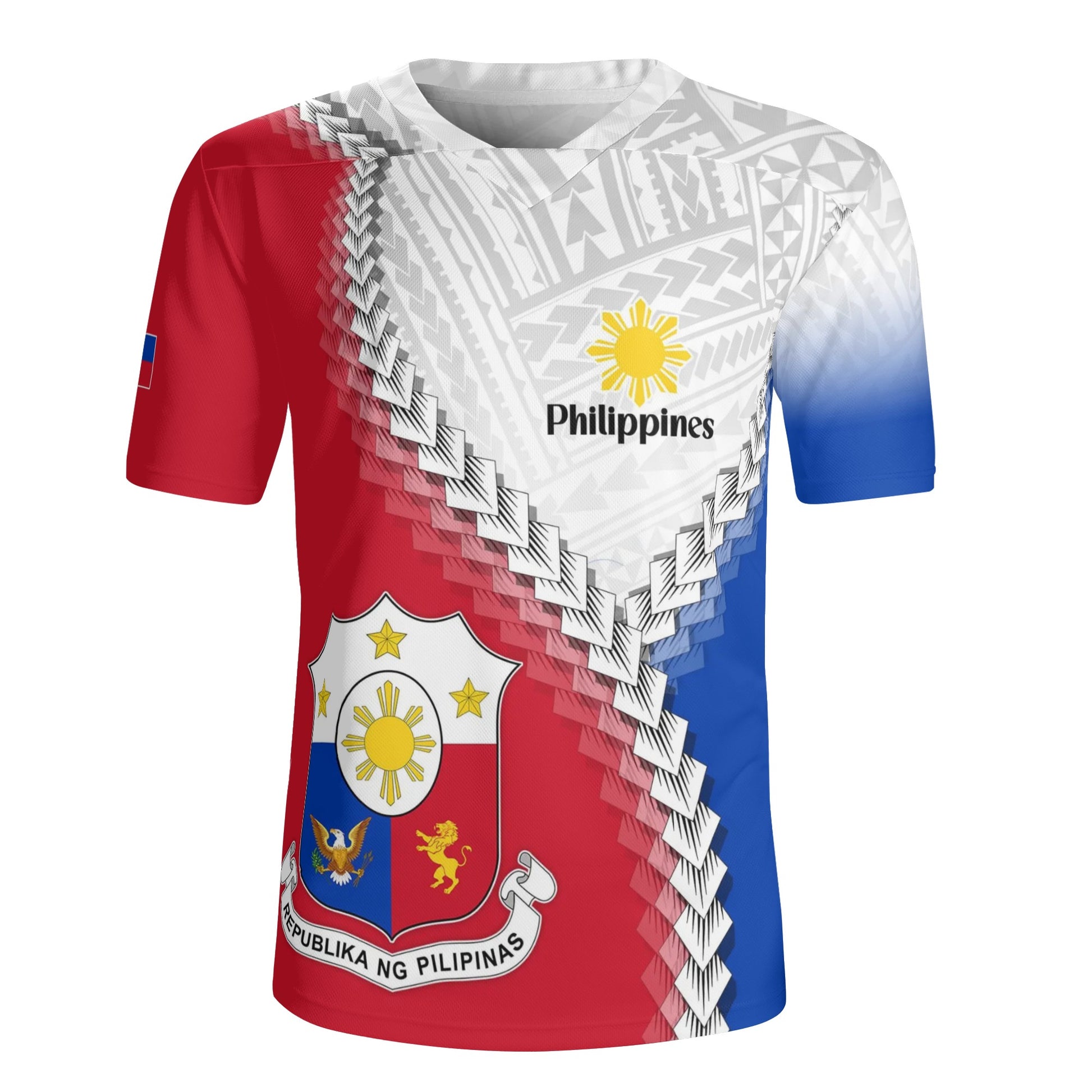Philippines Filipinos Rugby Jersey Custom Filipino Coat Of Arms With Tribal Patterns Flag Style