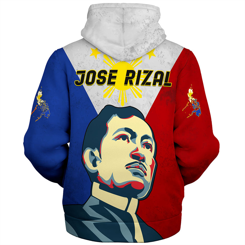 Philippines Filipinos Sherpa Hoodie Jose Rizal Flag Map Country Grunge