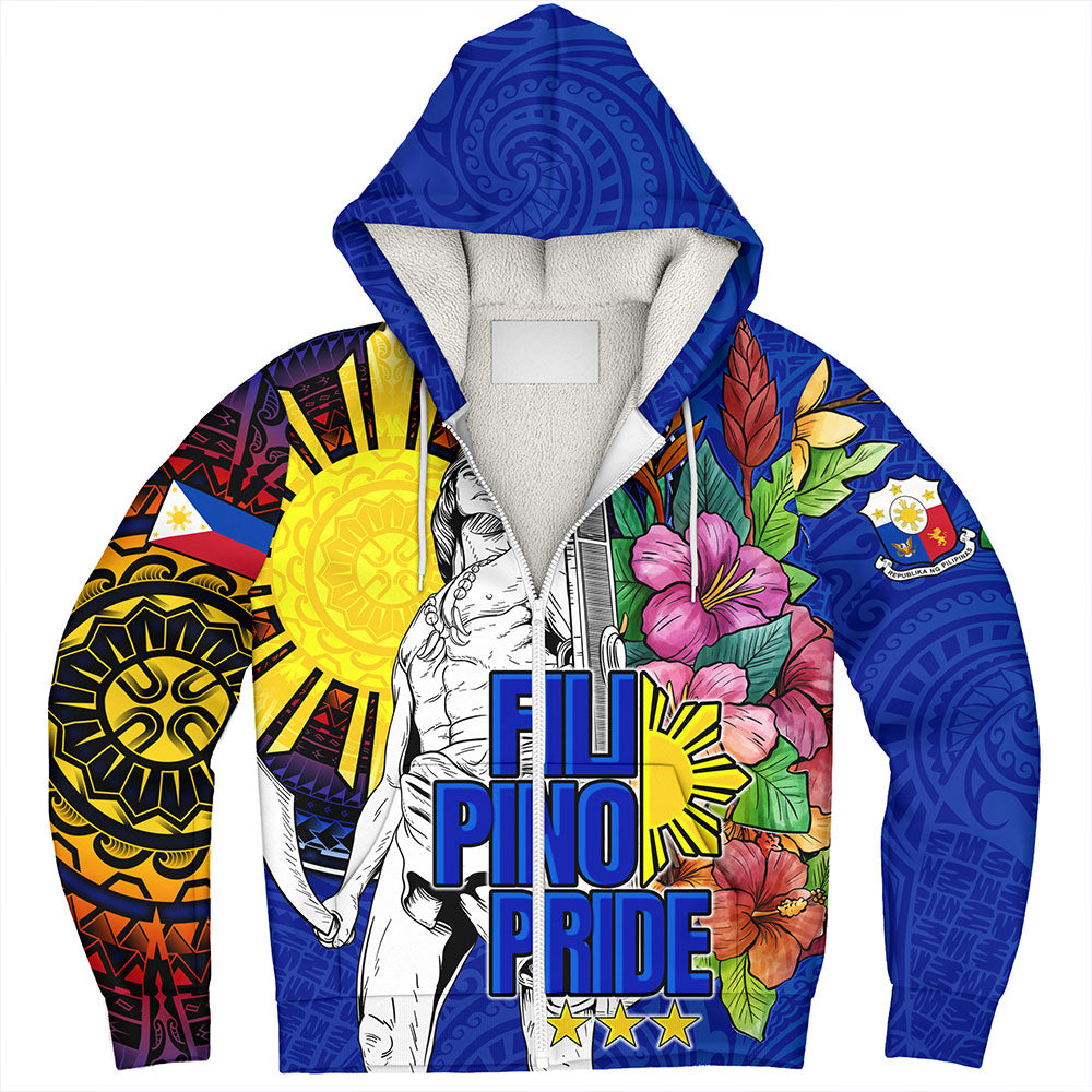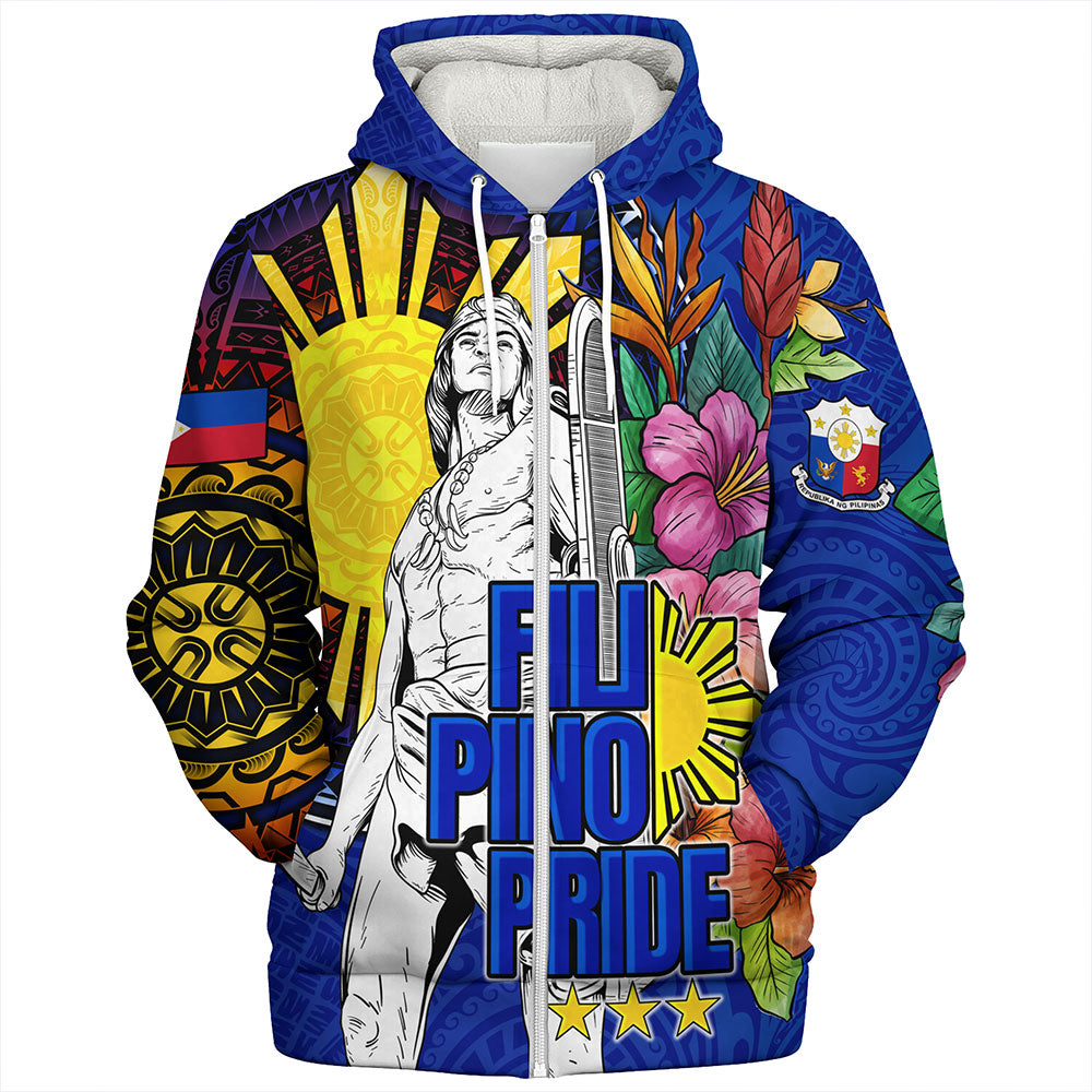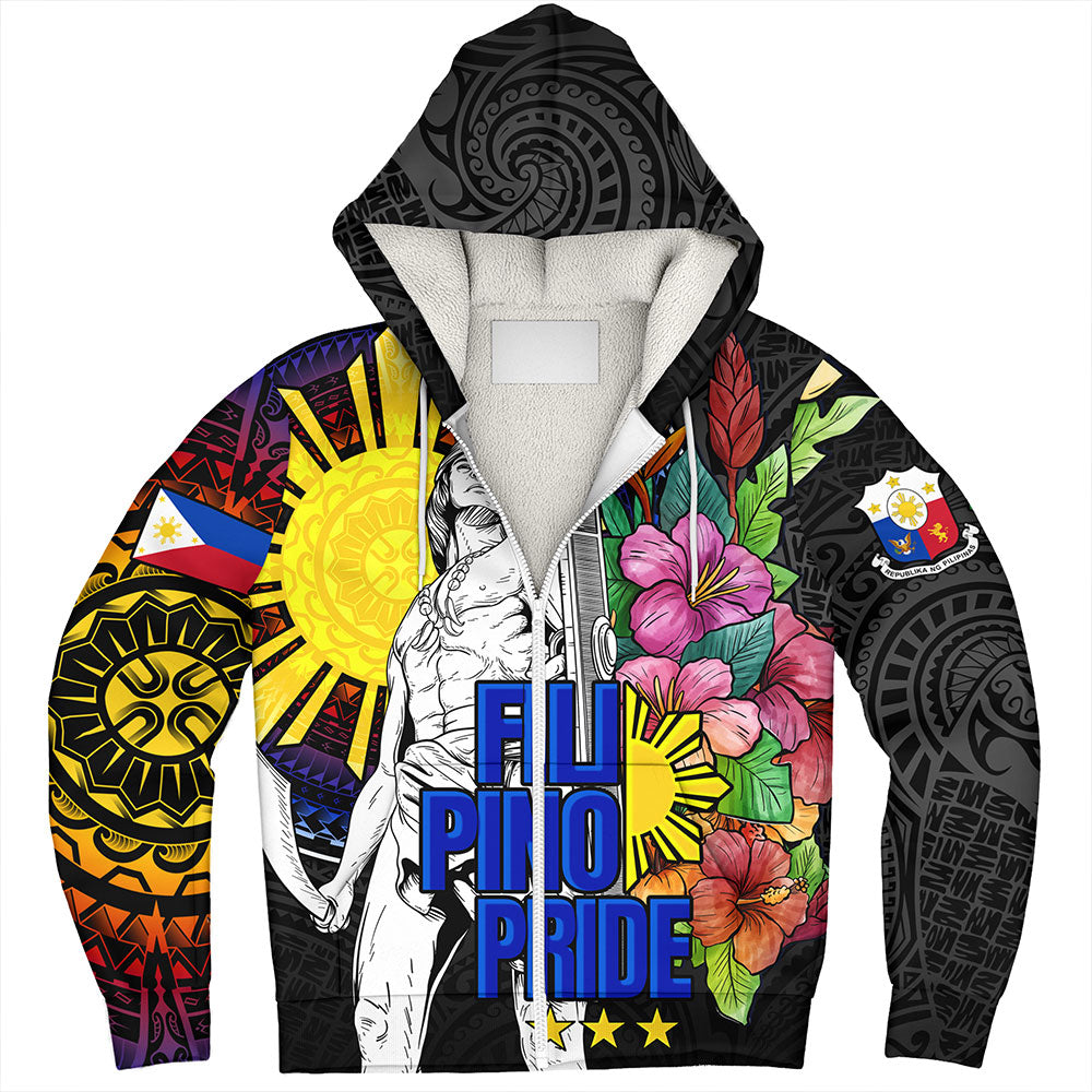 Philippines Filipinos Sherpa Hoodie Lapu-lapu Hero With Philippines Flowers Style