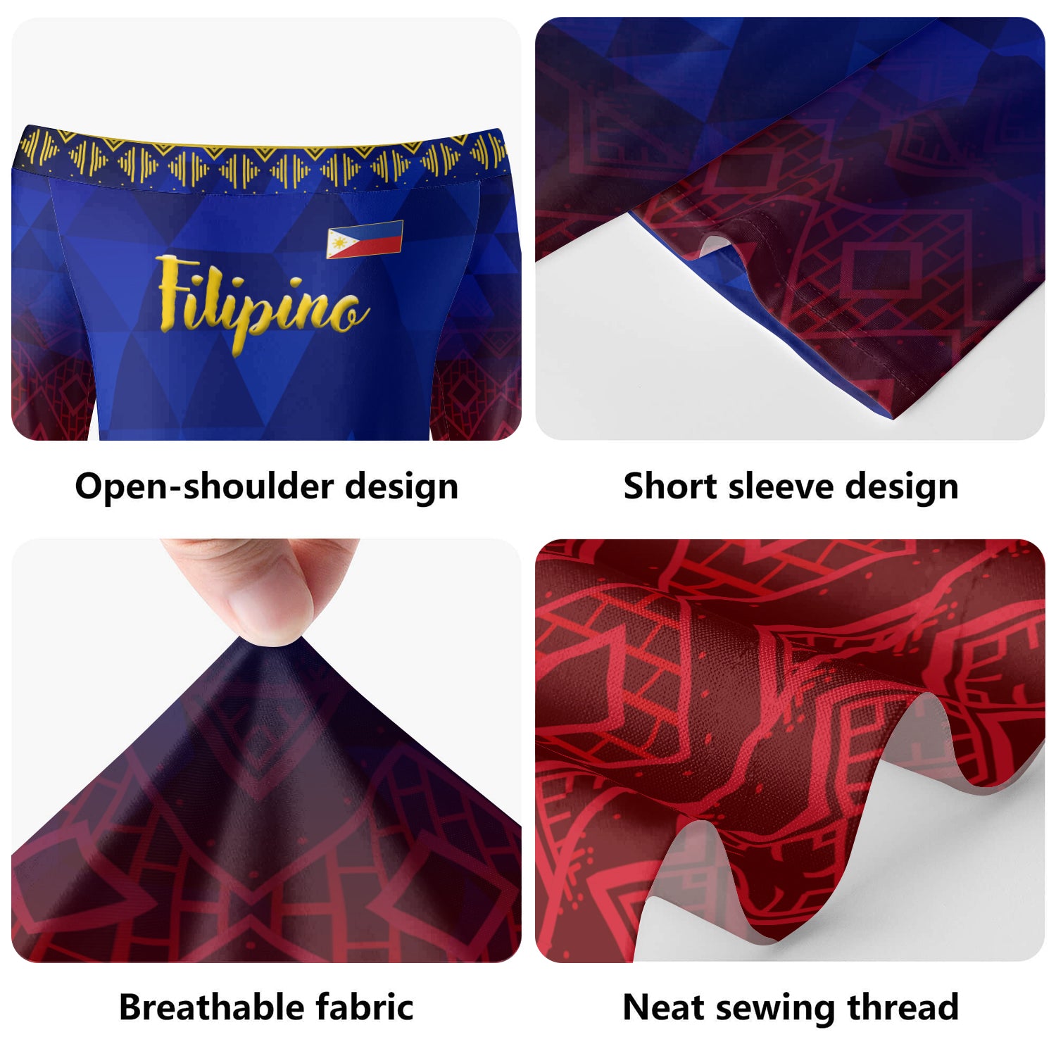Philippines Filipinos Short Sleeve Off The Shoulder Lady Dress Lowpolly With Tribal Motif