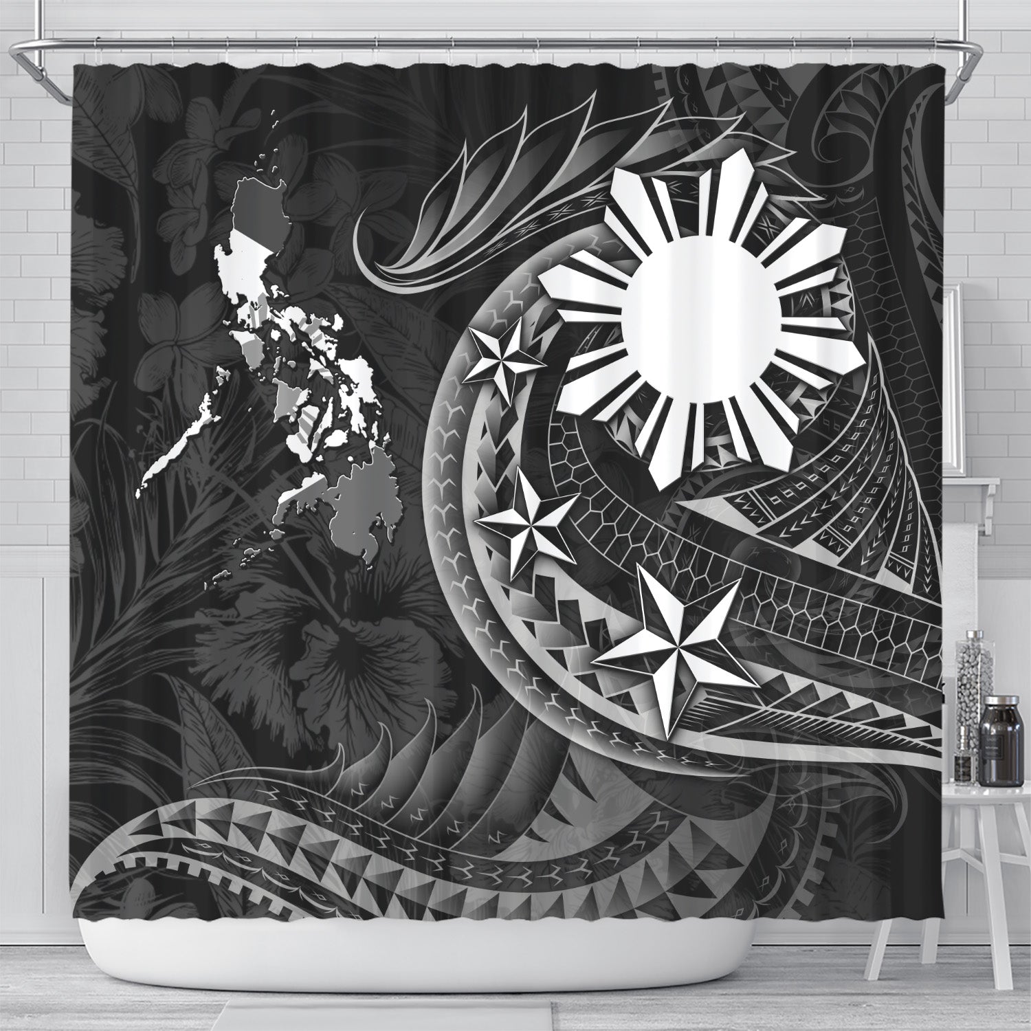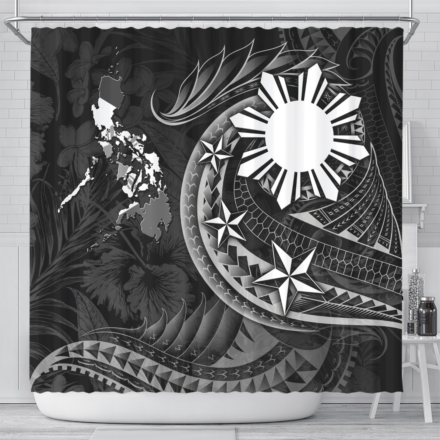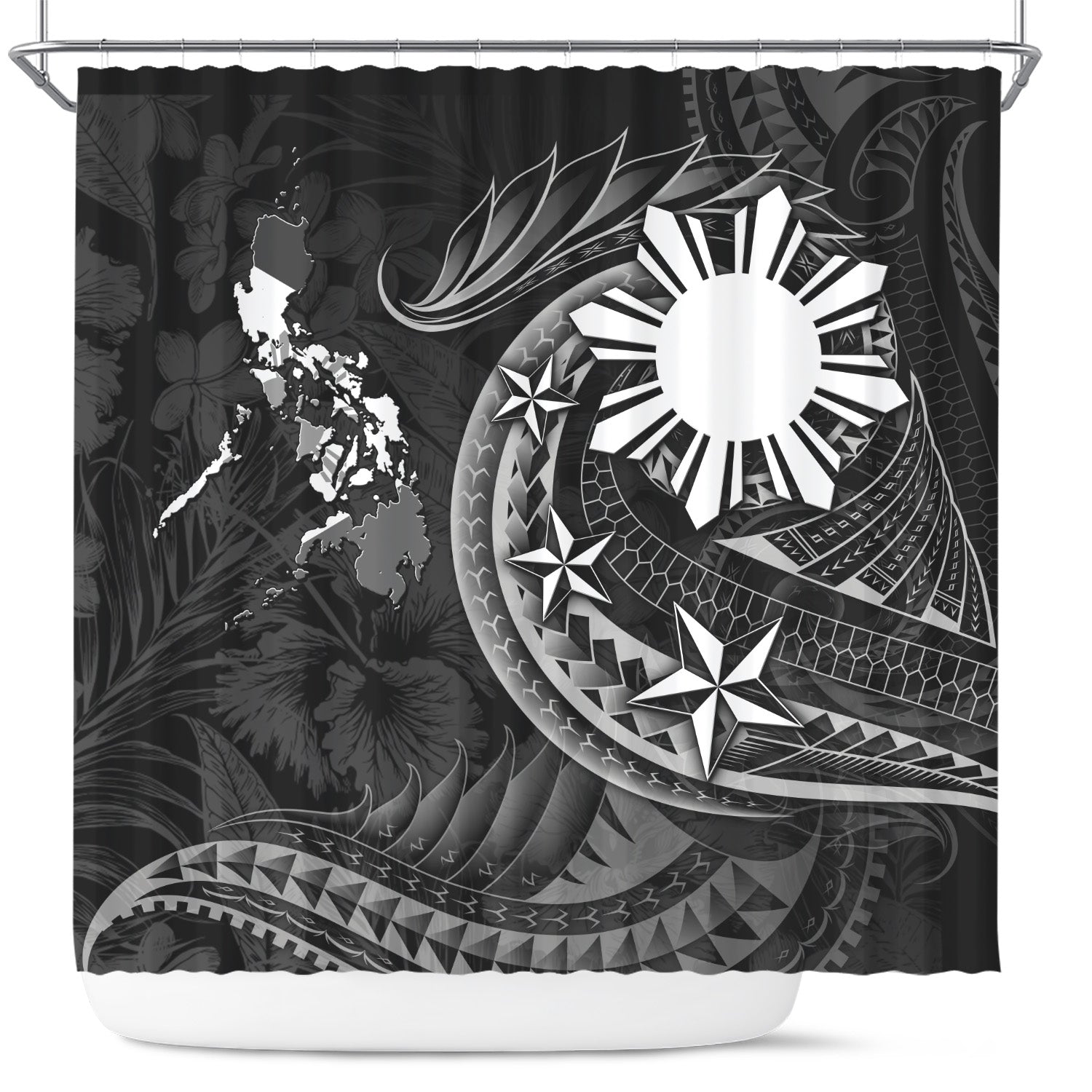 Philippines Filipinos Shower Curtain Philippines Sun Tribal Patterns Tropical Flowers Curve Style
