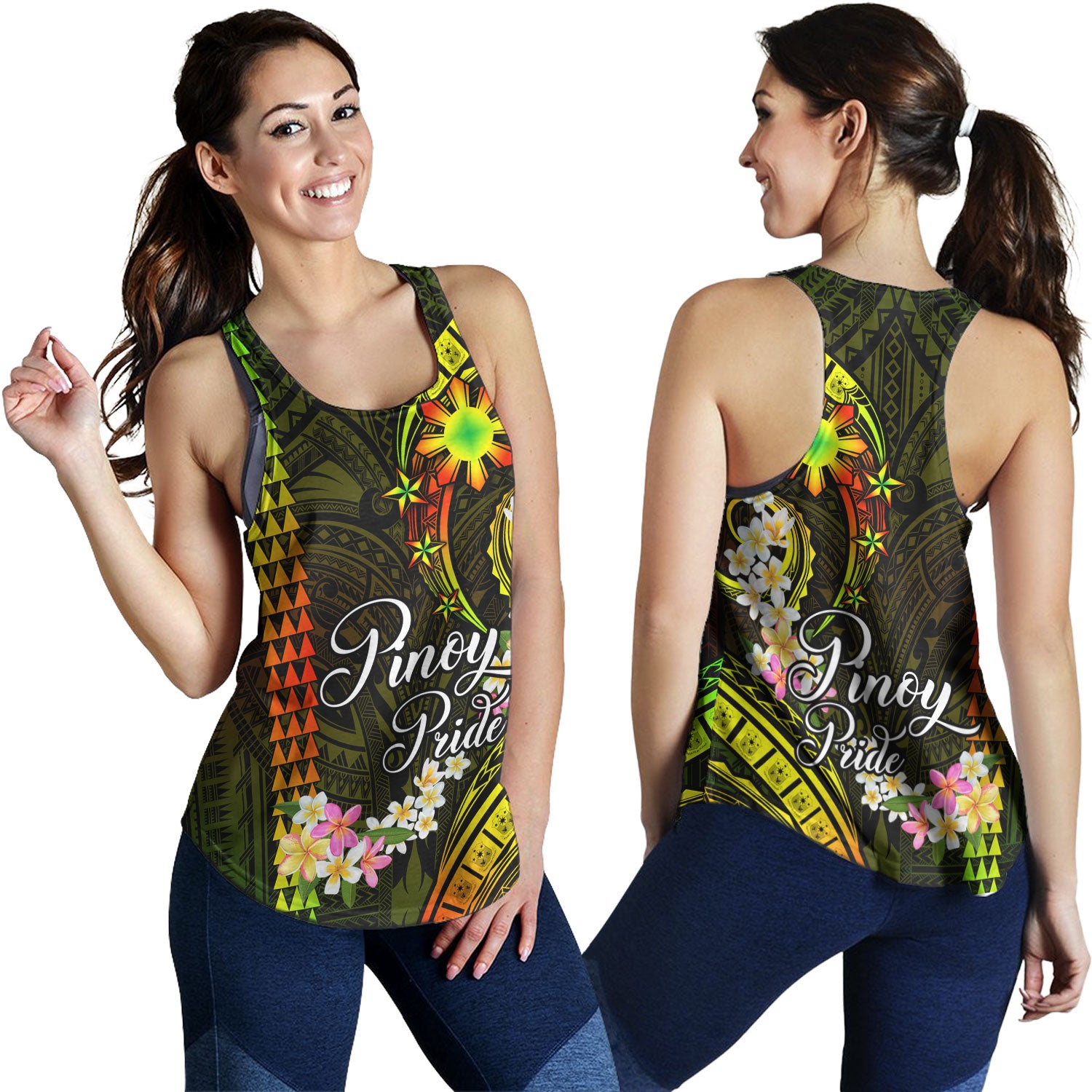 - With high-tech graphic prints on Women's Racerback Tanks, vibrant designs and colors make them entire look modern and chic.