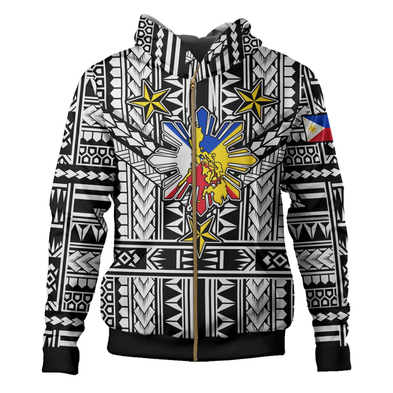 Philippines Hoodie - Filipino Sun And Stars Tribal Tattoo Patterns Style