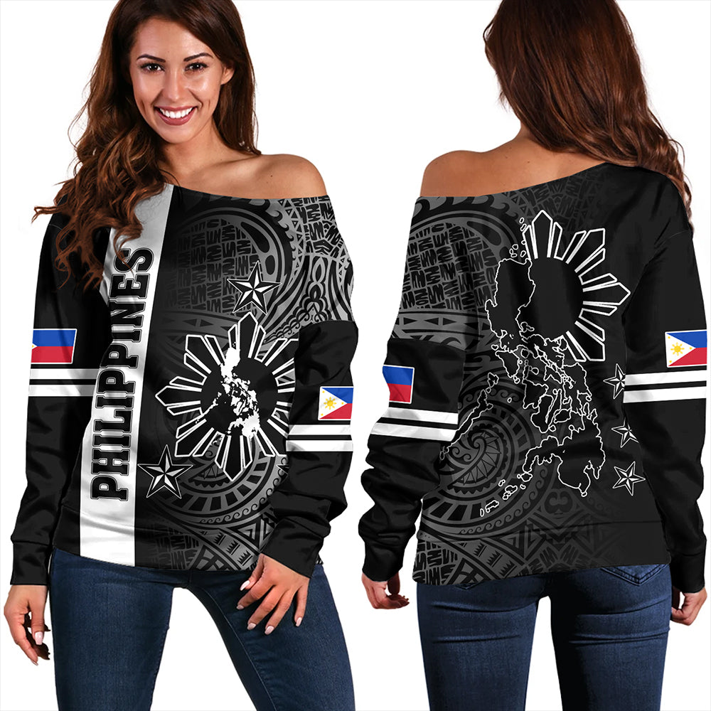 Philippines Off Shoulder Sweatshirt Lauhala Half Concept Black