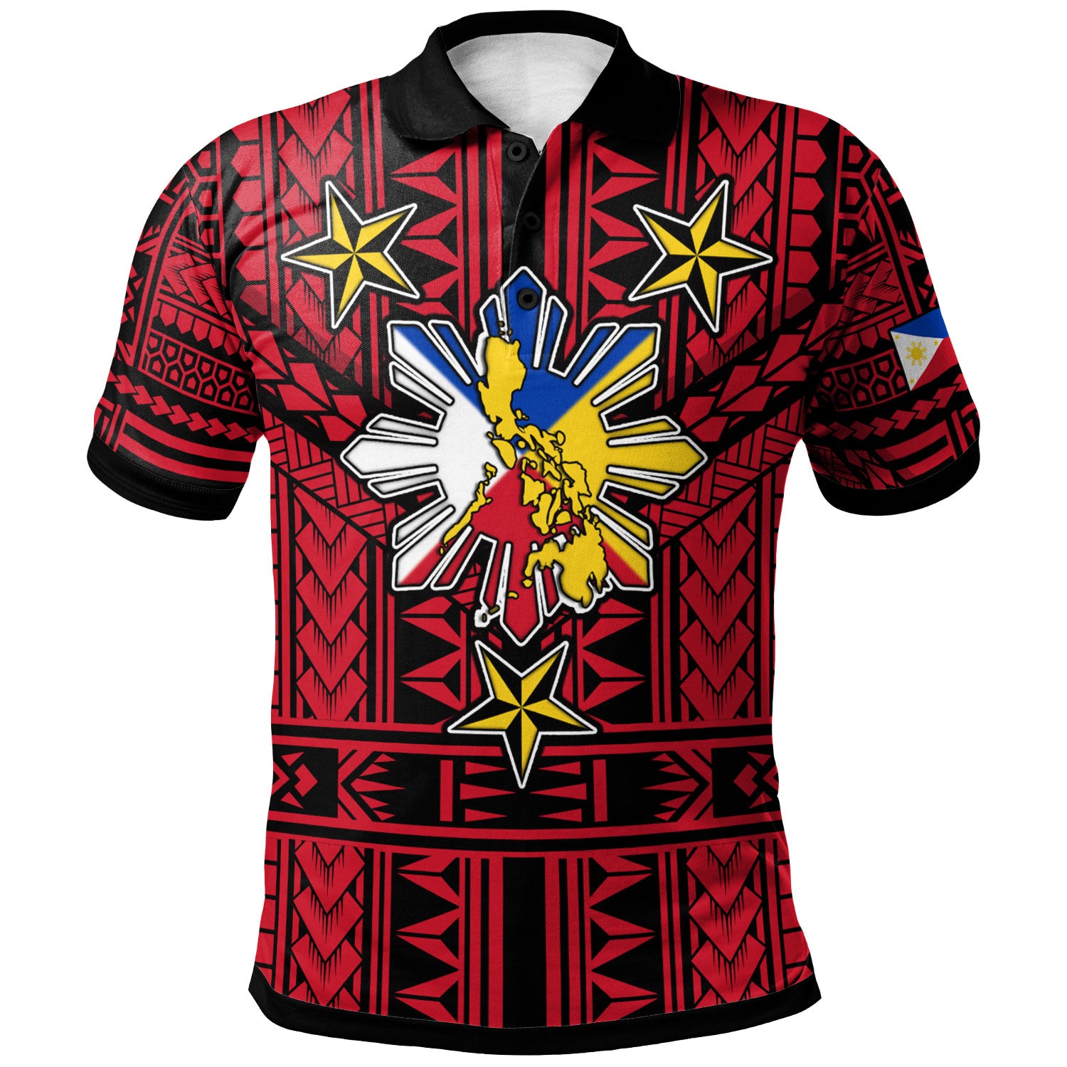 Philippines Polo Shirt - Filipino Sun And Stars Tribal Tattoo Patterns Style
