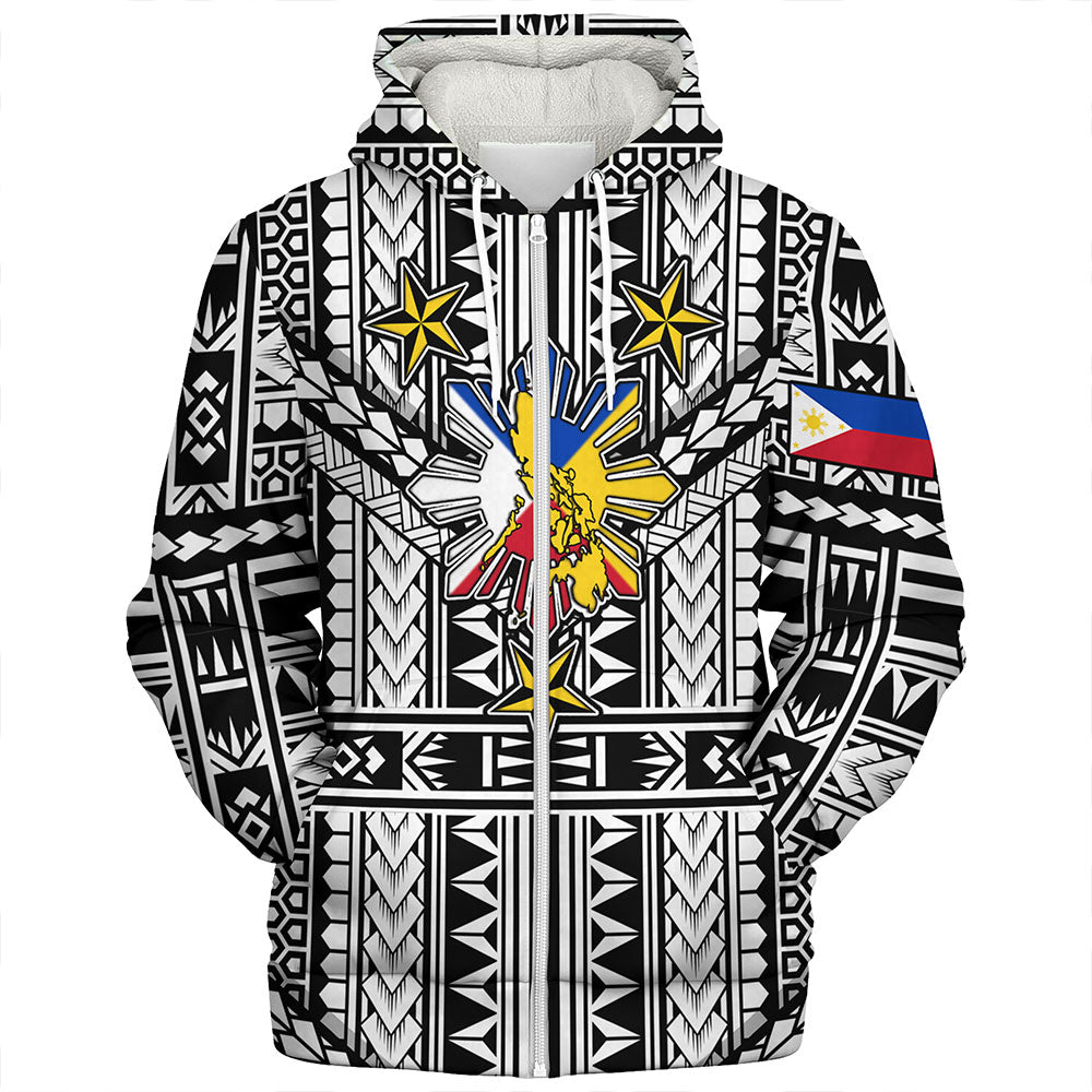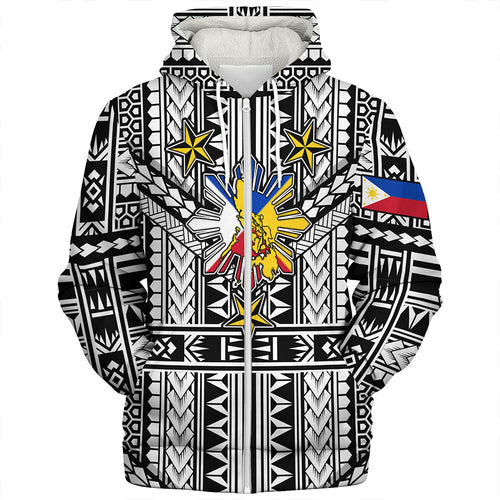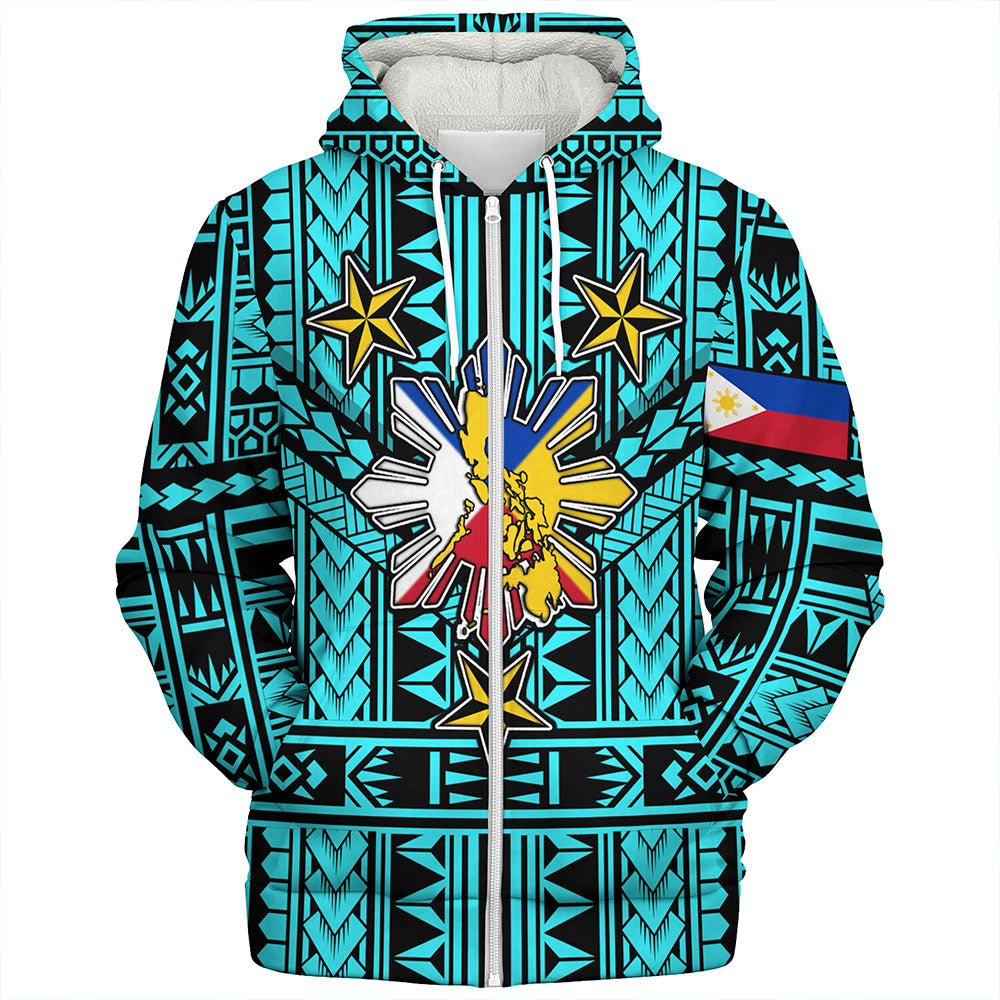 Philippines Sherpa Hoodie - Filipino Sun And Stars Tribal Tattoo Patterns Style