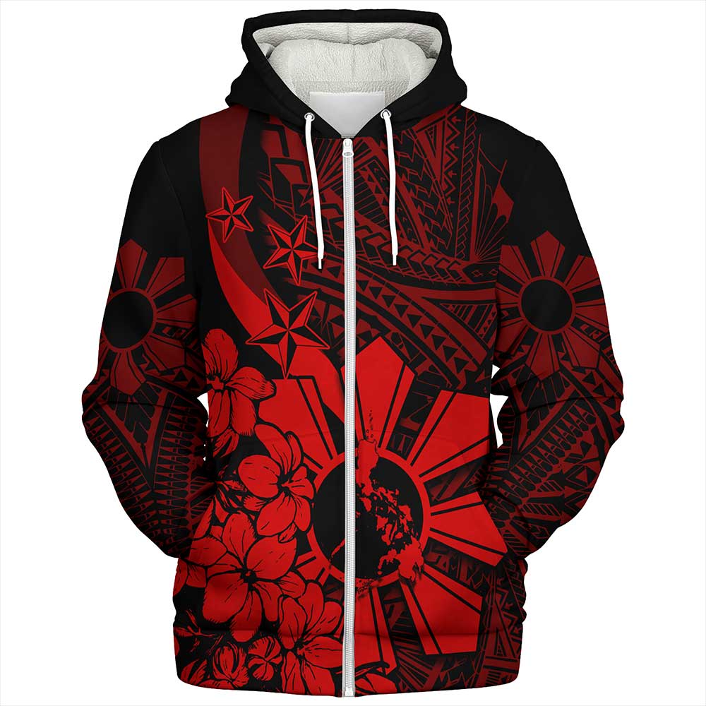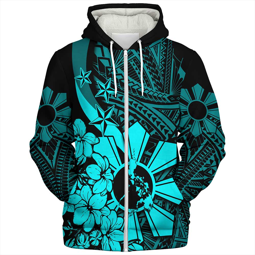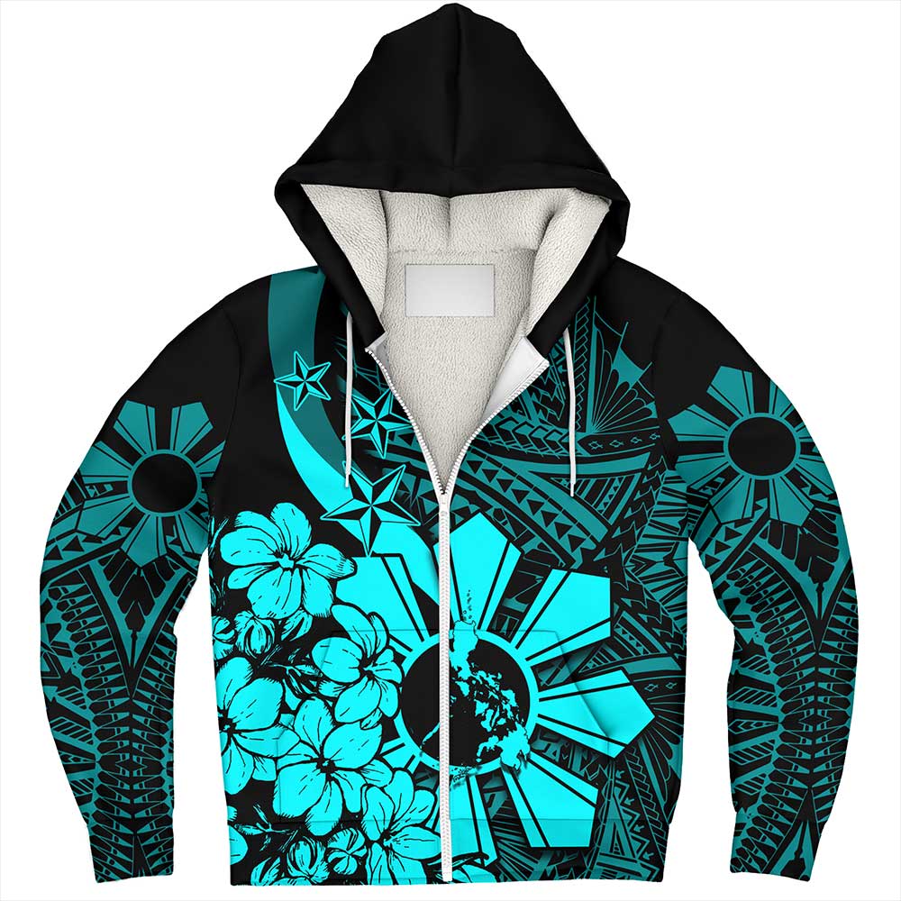 Philippines Sherpa Hoodie - Polynesian Pattern Filipino Sampaguita