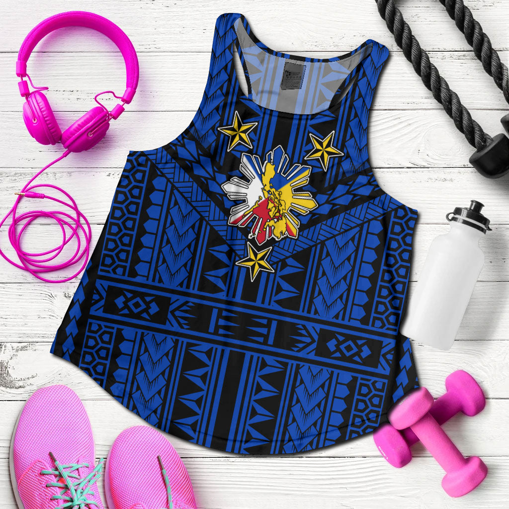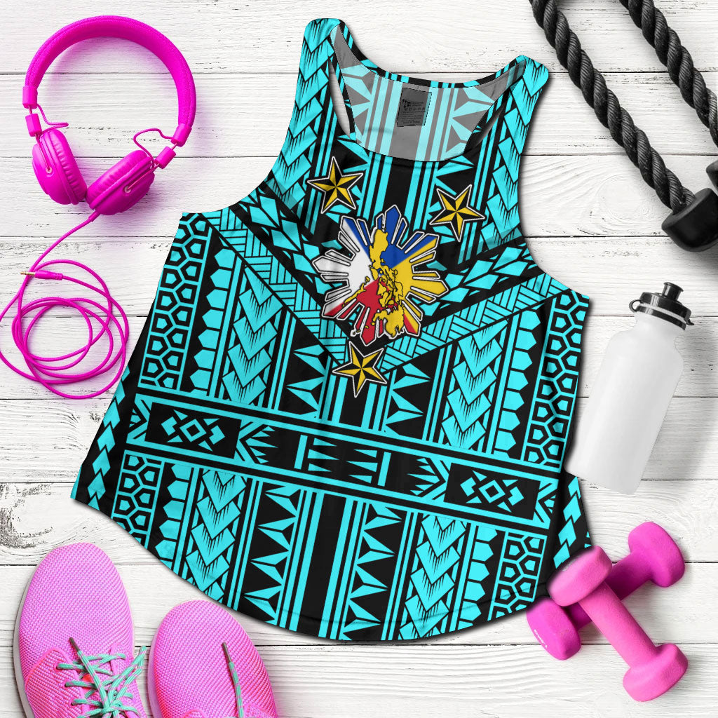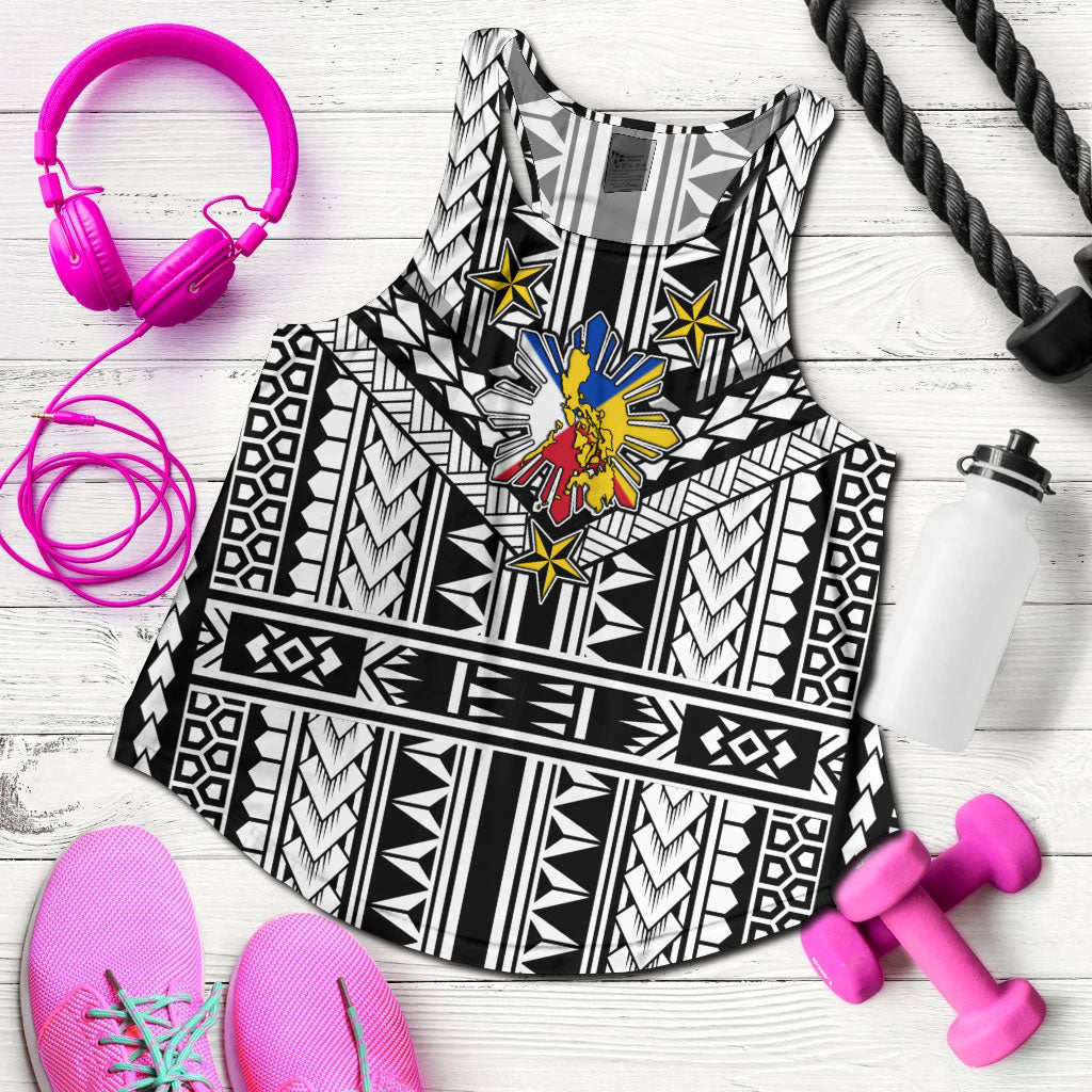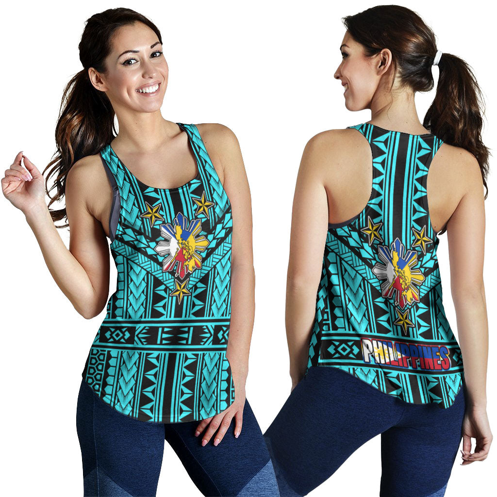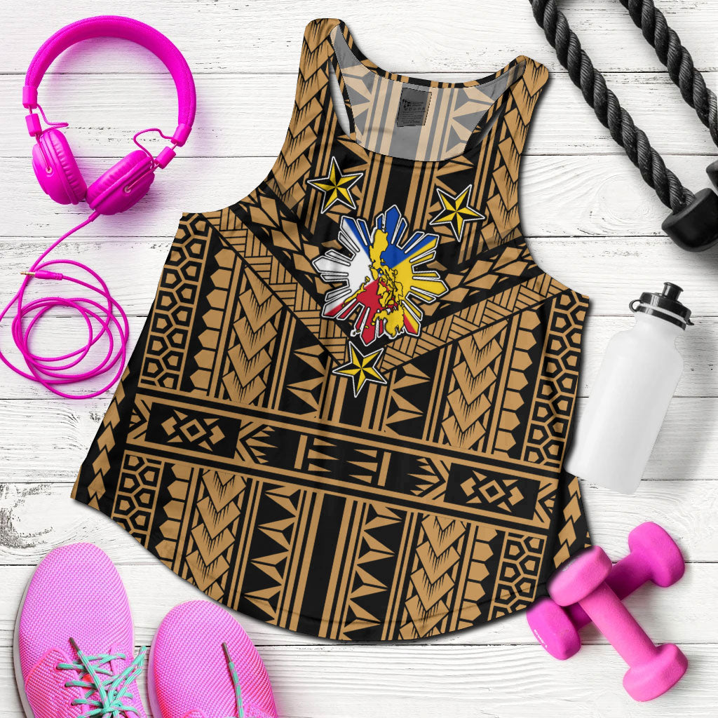 Philippines Women Tank - Filipino Sun And Stars Tribal Tattoo Patterns Style