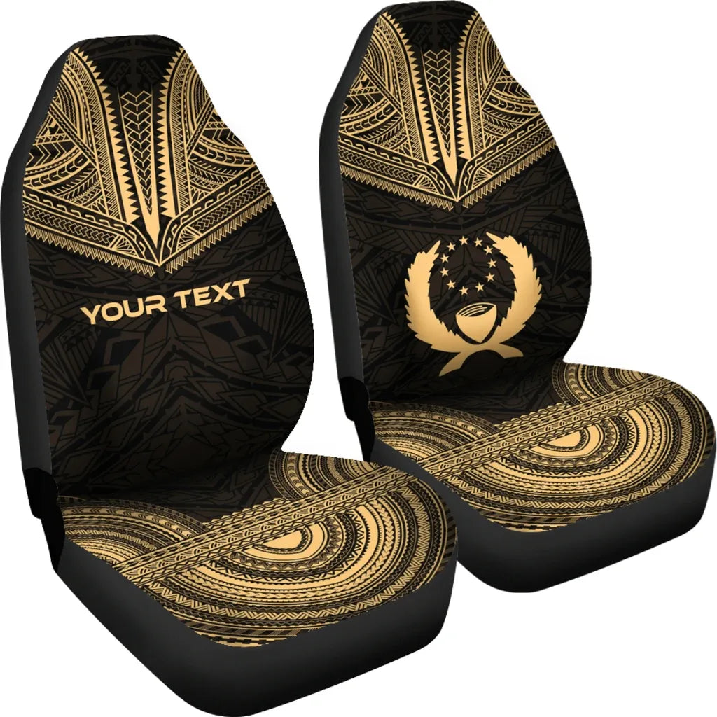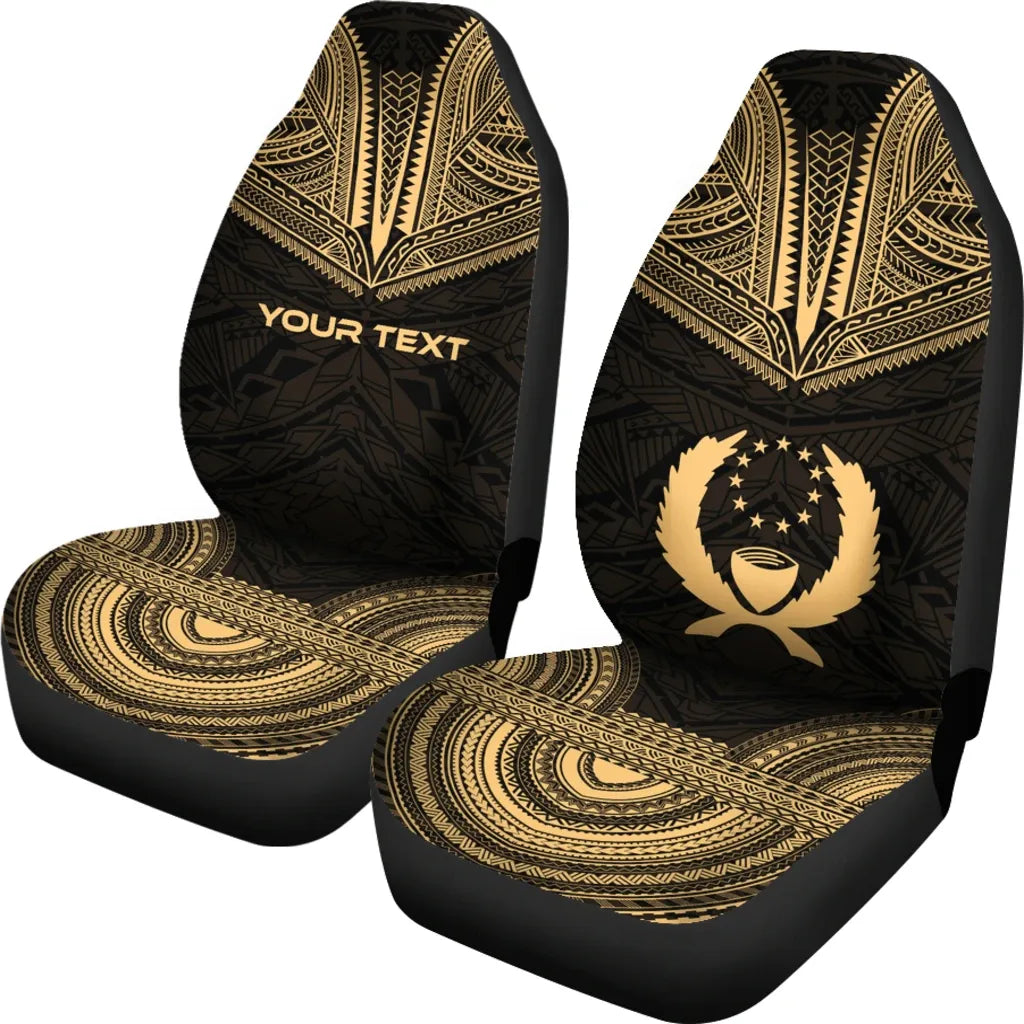 Pohnpei Custom Personalised Car Seat Cover - Pohnpei Flag Polynesian Chief Tattoo Gold Version