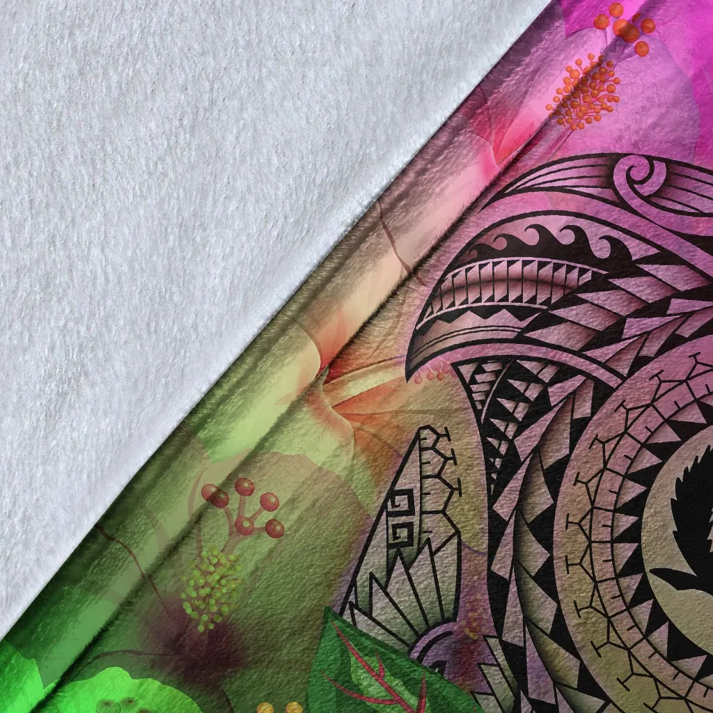 Pohnpei Polynesian Premium Blanket - Manta Ray Tropical Flowers