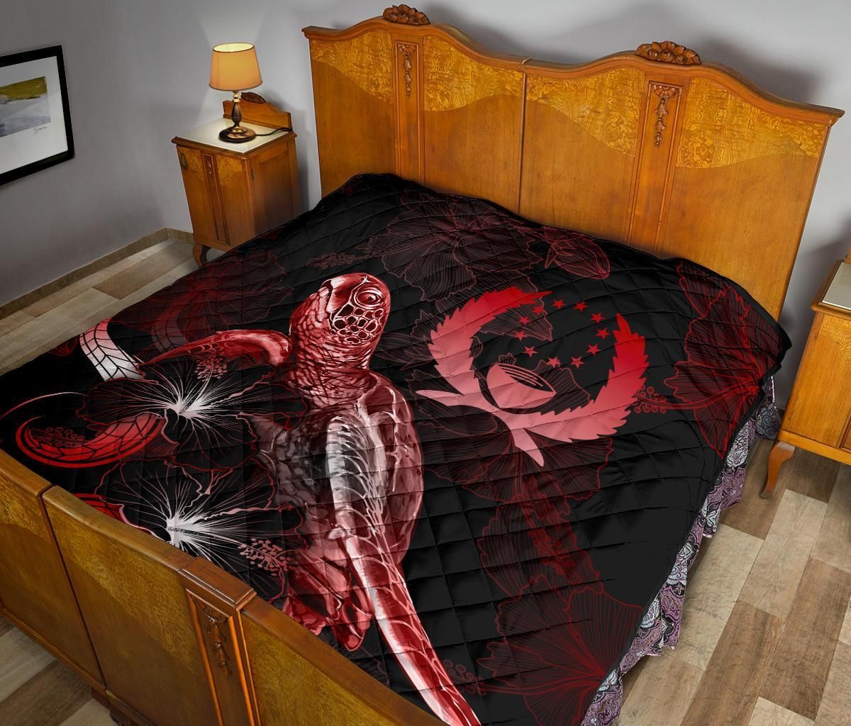 Pohnpei Polynesian Premium Quilt - Turtle With Blooming Hibiscus Red