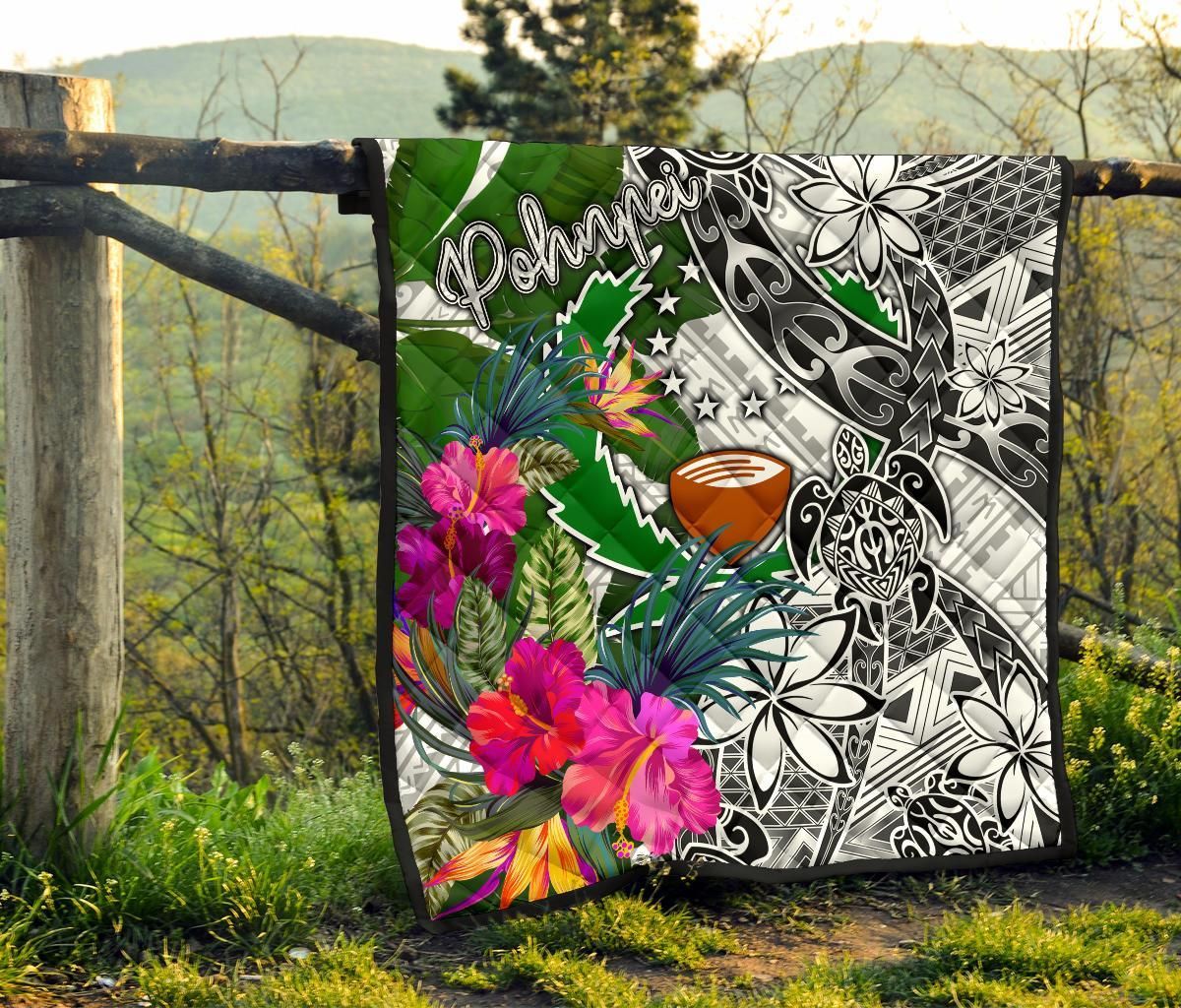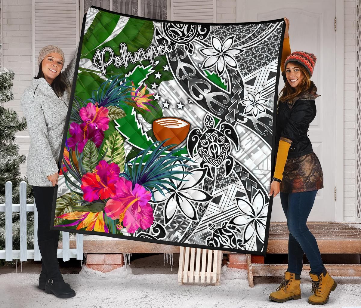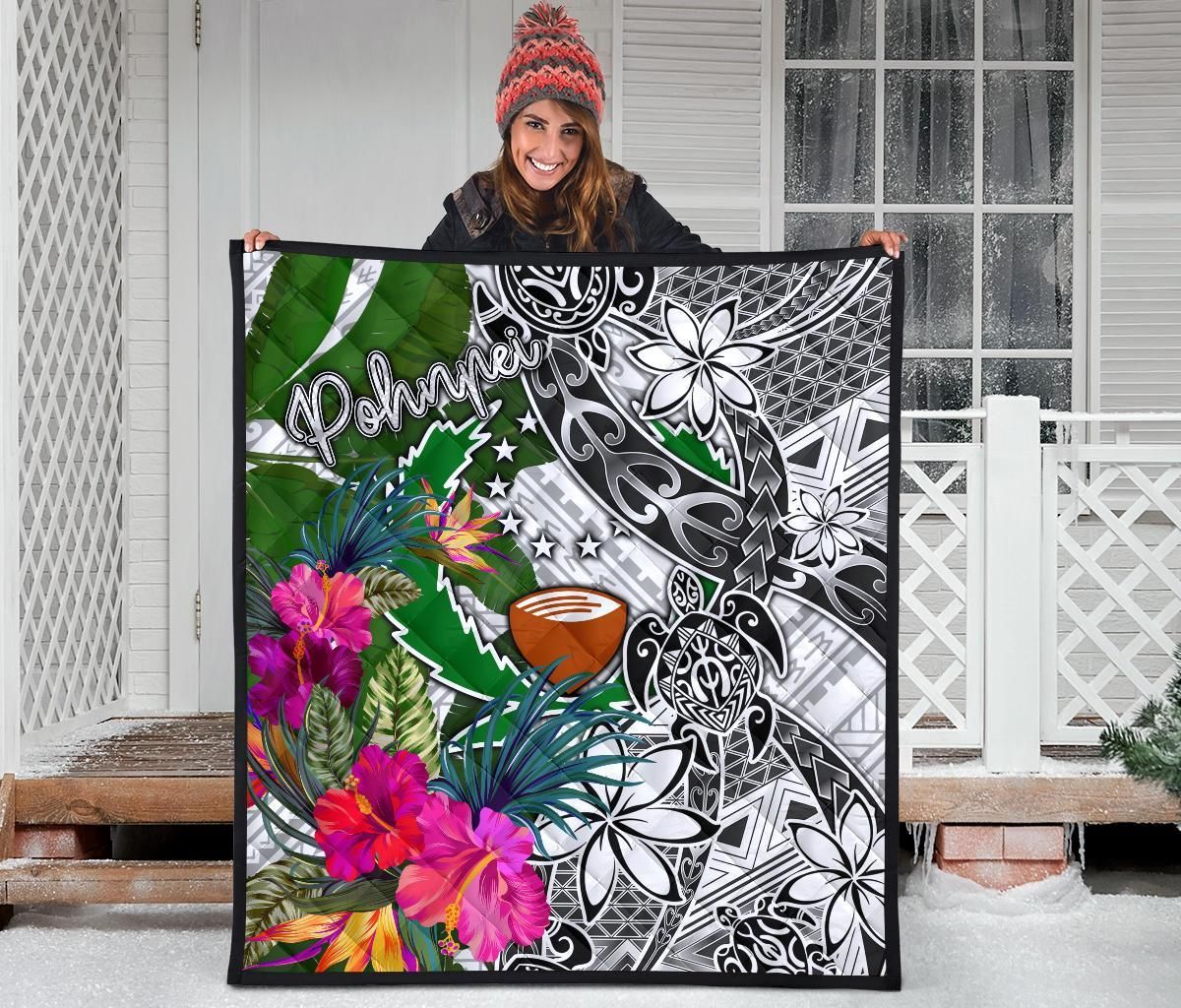 Pohnpei Premium Quilt White - Turtle Plumeria Banana Leaf