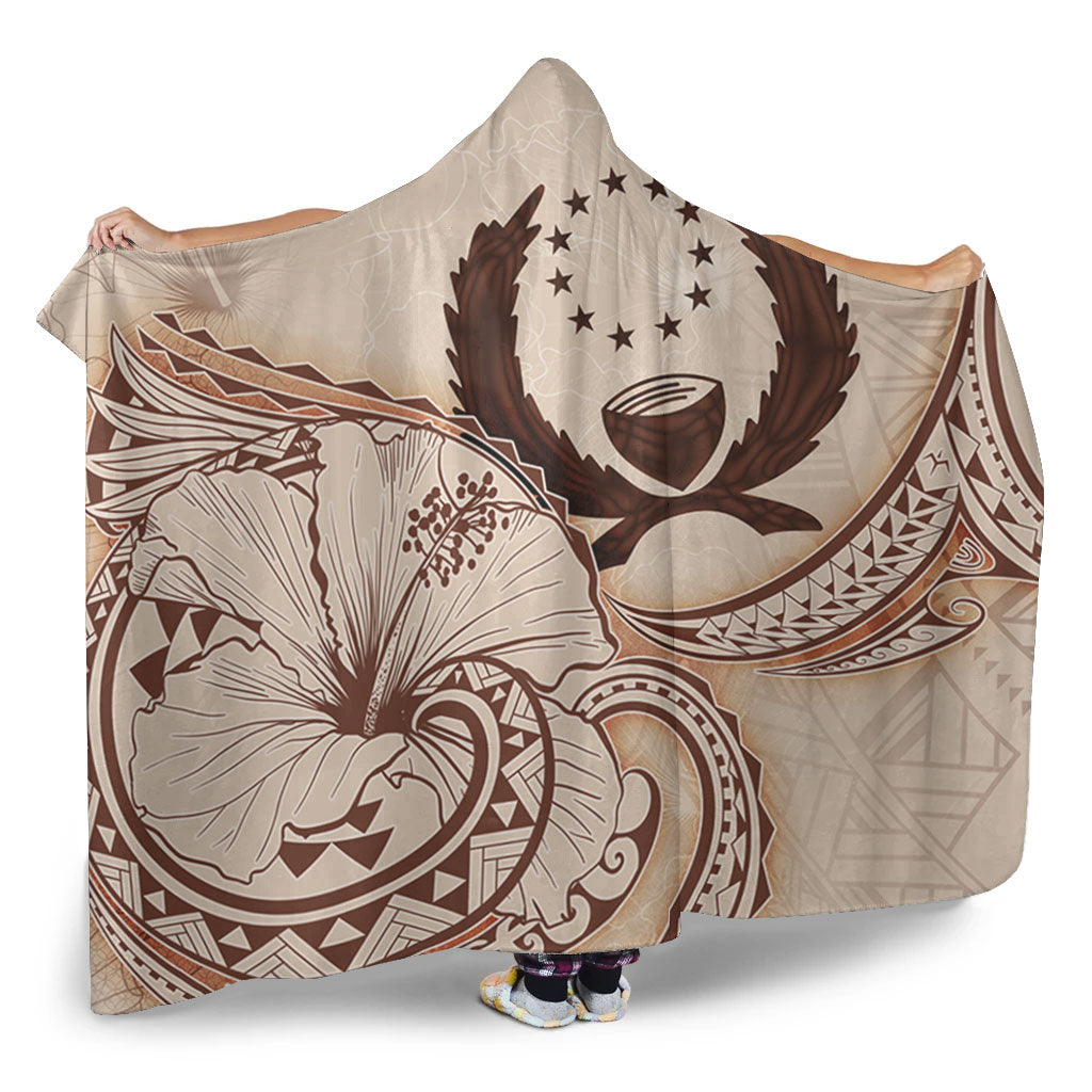 Pohnpei State Hooded Blanket Hibiscus Flower Vintage Style