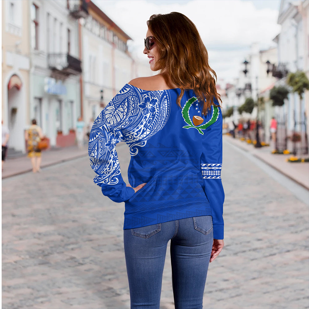 Pohnpei State Off Shoulder Sweatshirt Polynesian Flag With Coat Of Arms