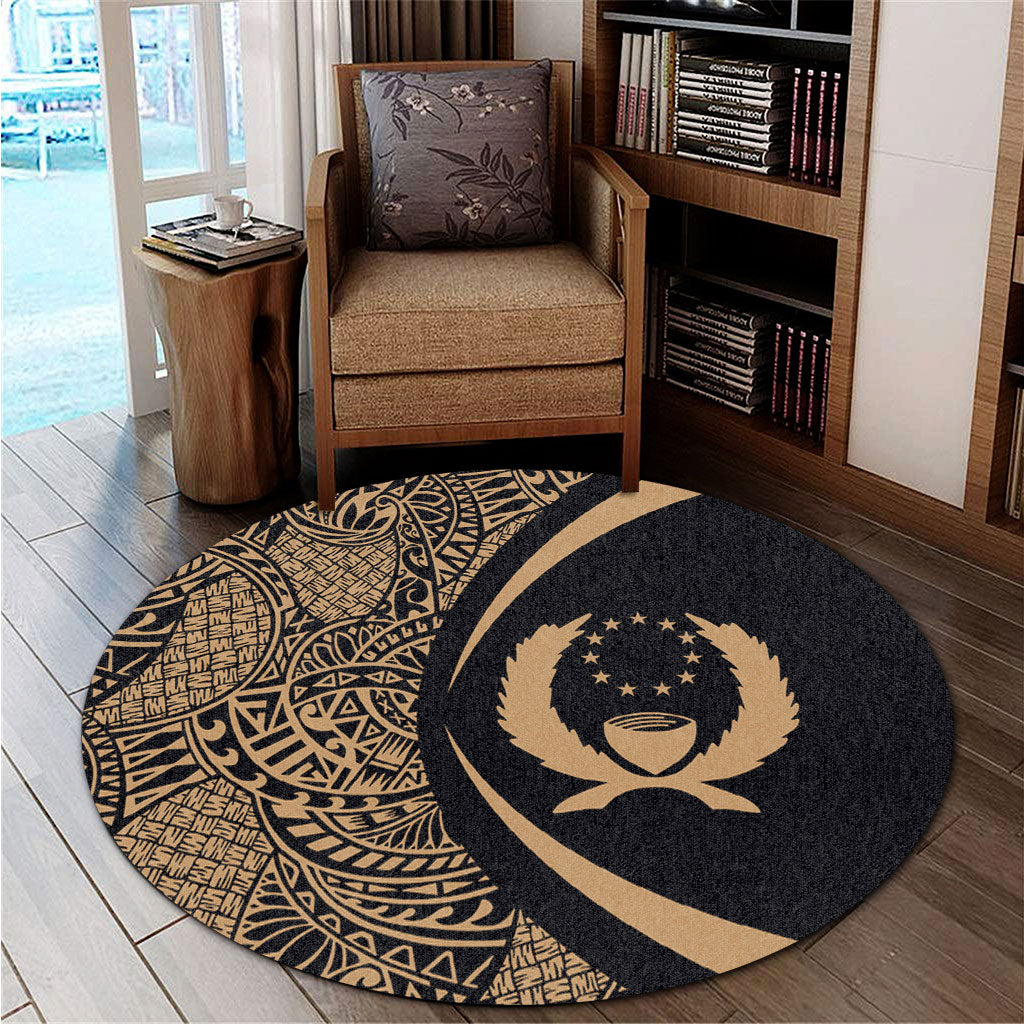 Pohnpei State Round Rug Lauhala Gold Circle Style