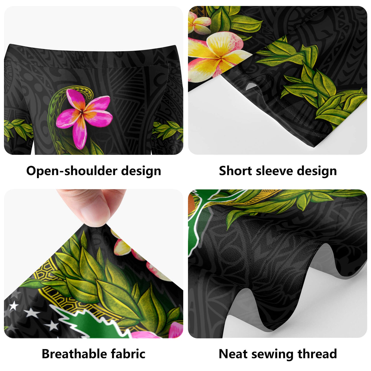 Pohnpei State Short Sleeve Off The Shoulder Lady Dress Plumeria Tribal