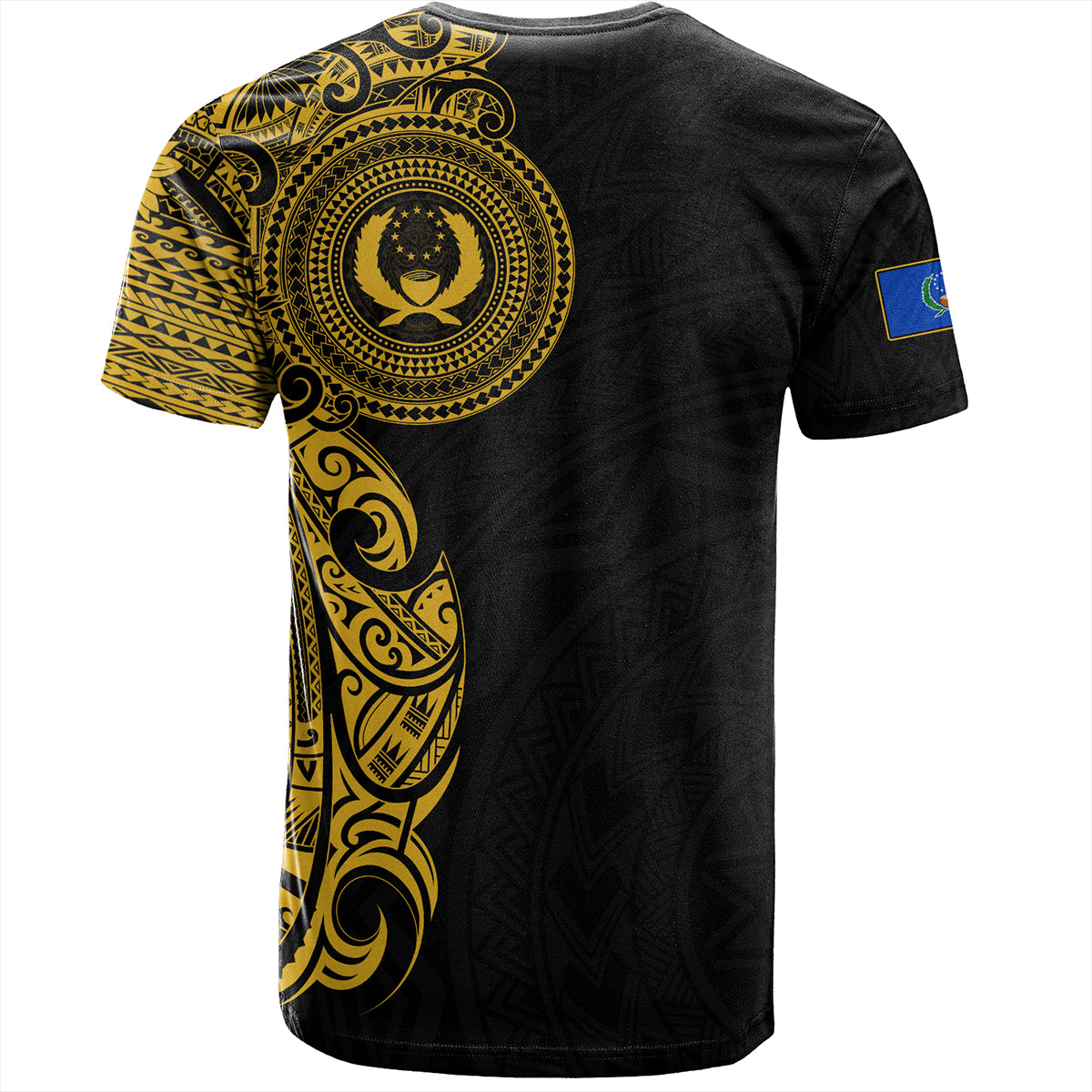 Pohnpei State T-Shirt Custom Polynesian Half Sleeve Gold Tattoo With Seal Black