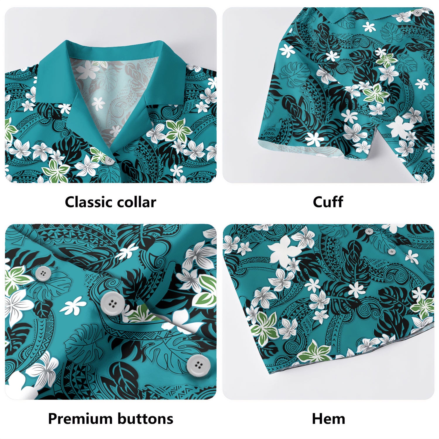 Polynesia Combo Dress And Shirt Fabric Traditional Polynesian With Plumeria And Tiare Flowers