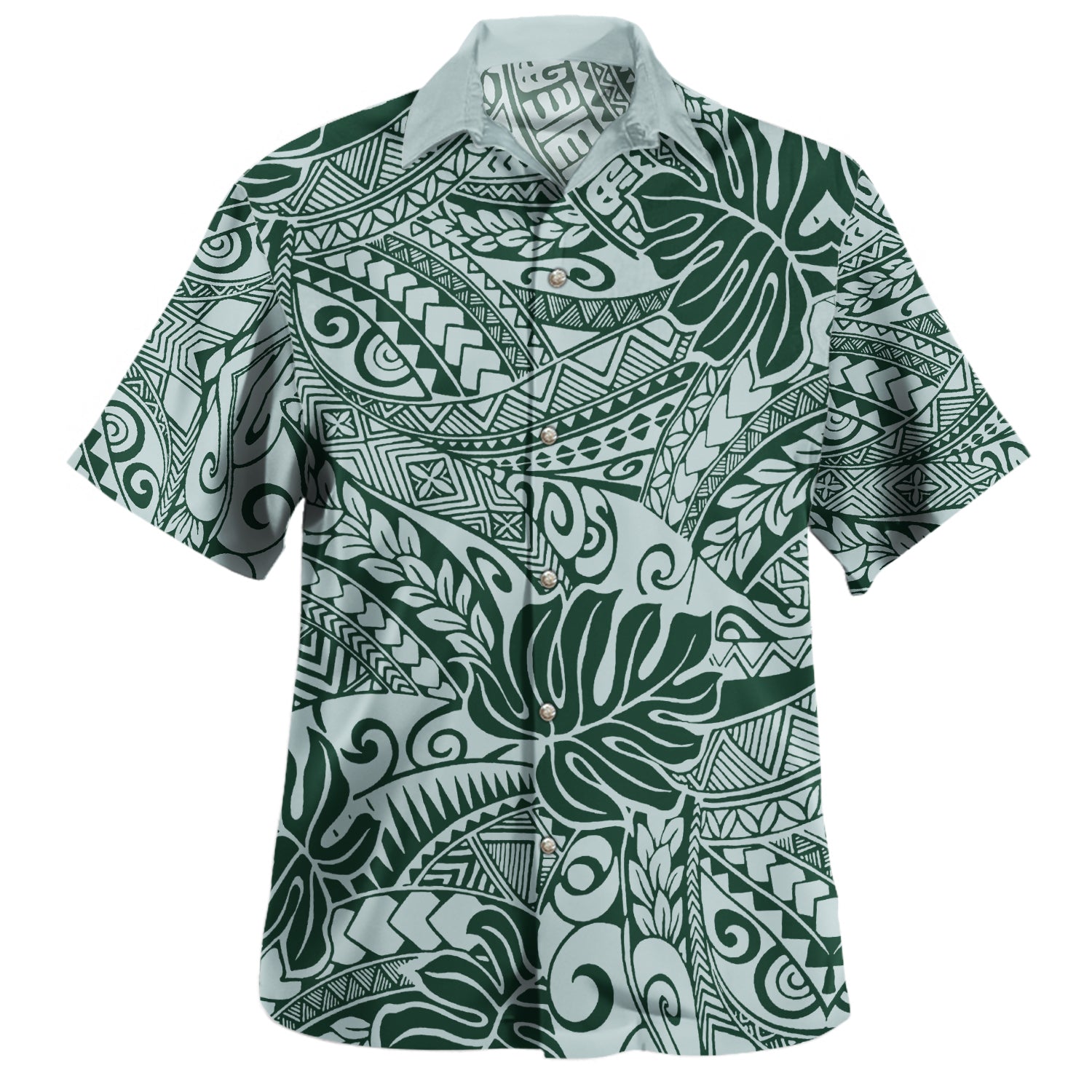 Polynesia Combo Dress And Shirt Tribal Polynesian Pattern Leaf Green
