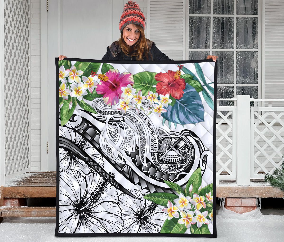 Polynesian American Samoa Premium Quilt - Summer Plumeria (White)
