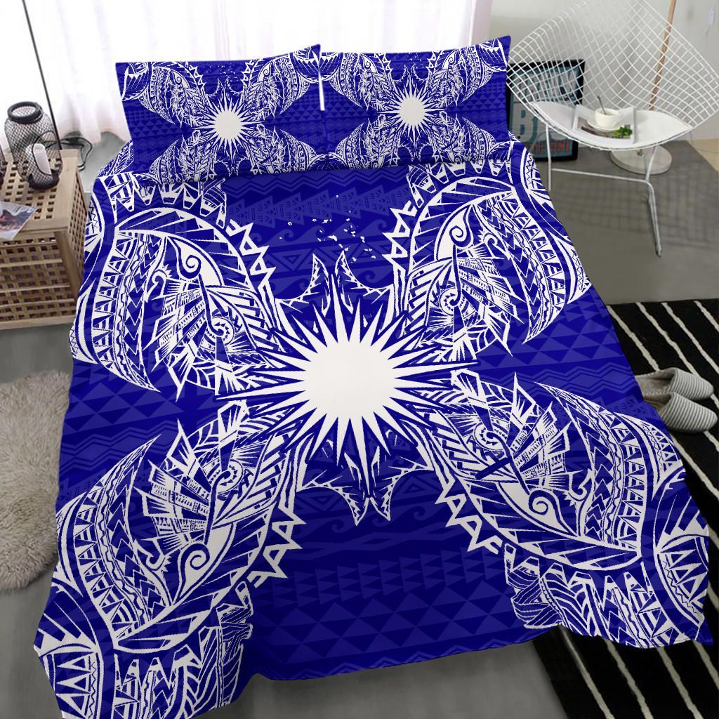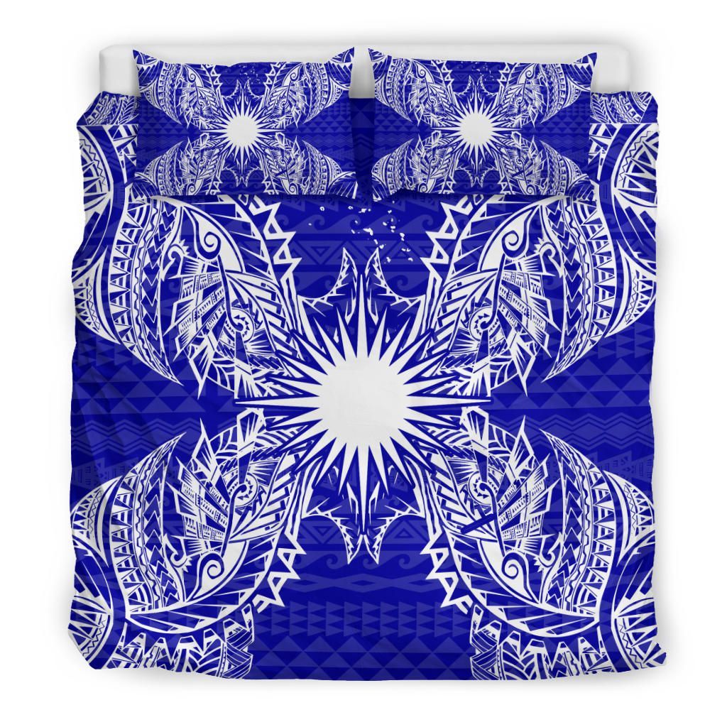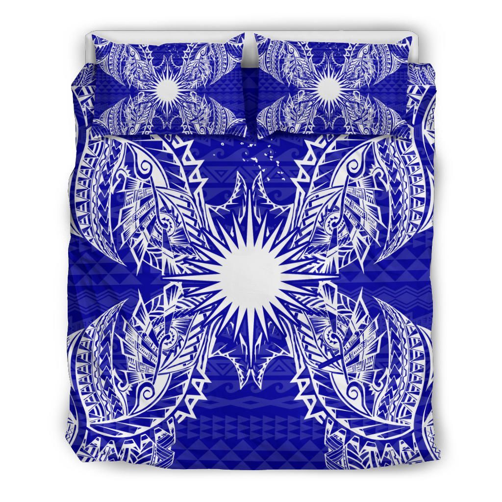Polynesian Bedding Set - Marshall Islands Duvet Cover Set Map Blue