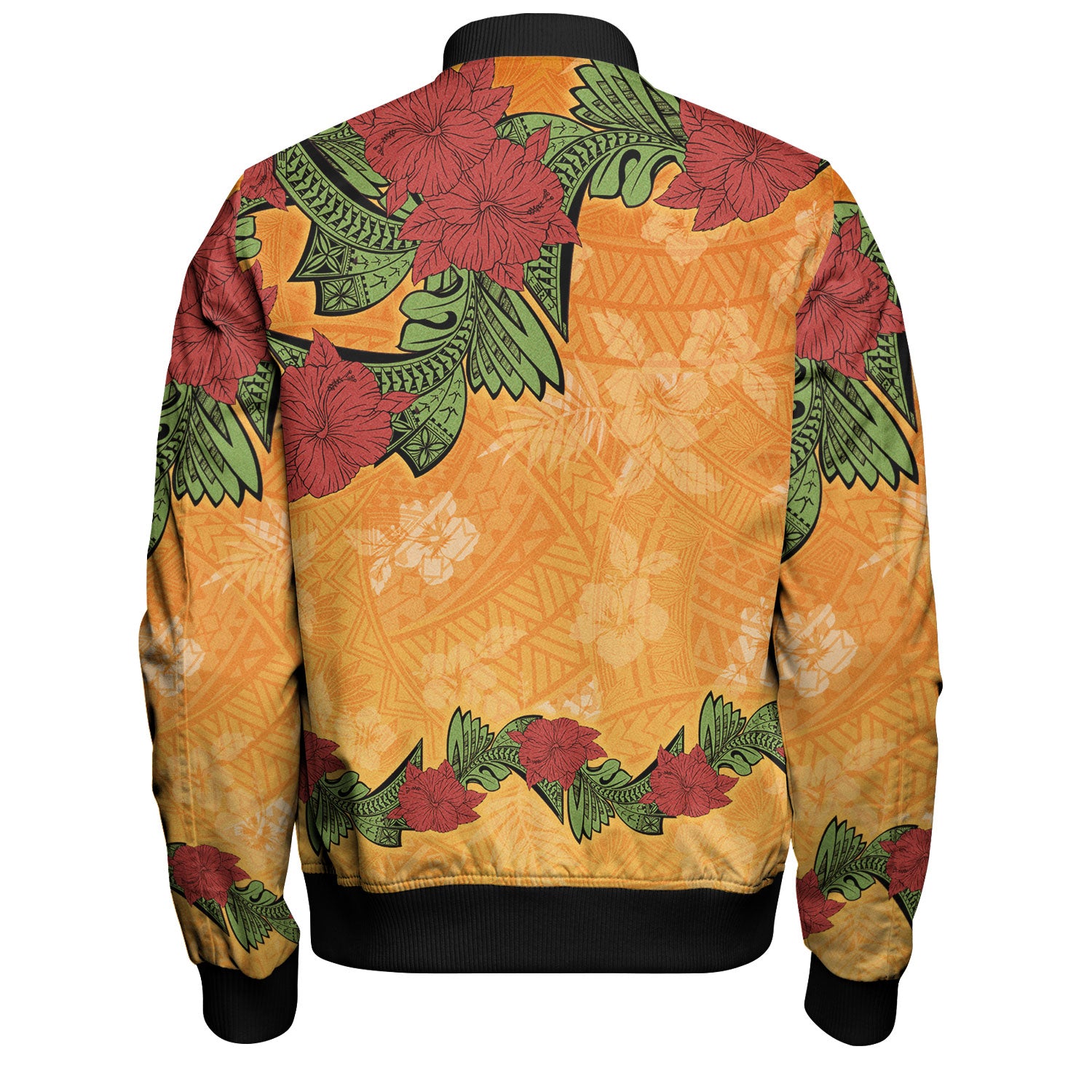 Polynesian Bomber Jacket Tropical Flowers Polynesian Tribal Motif