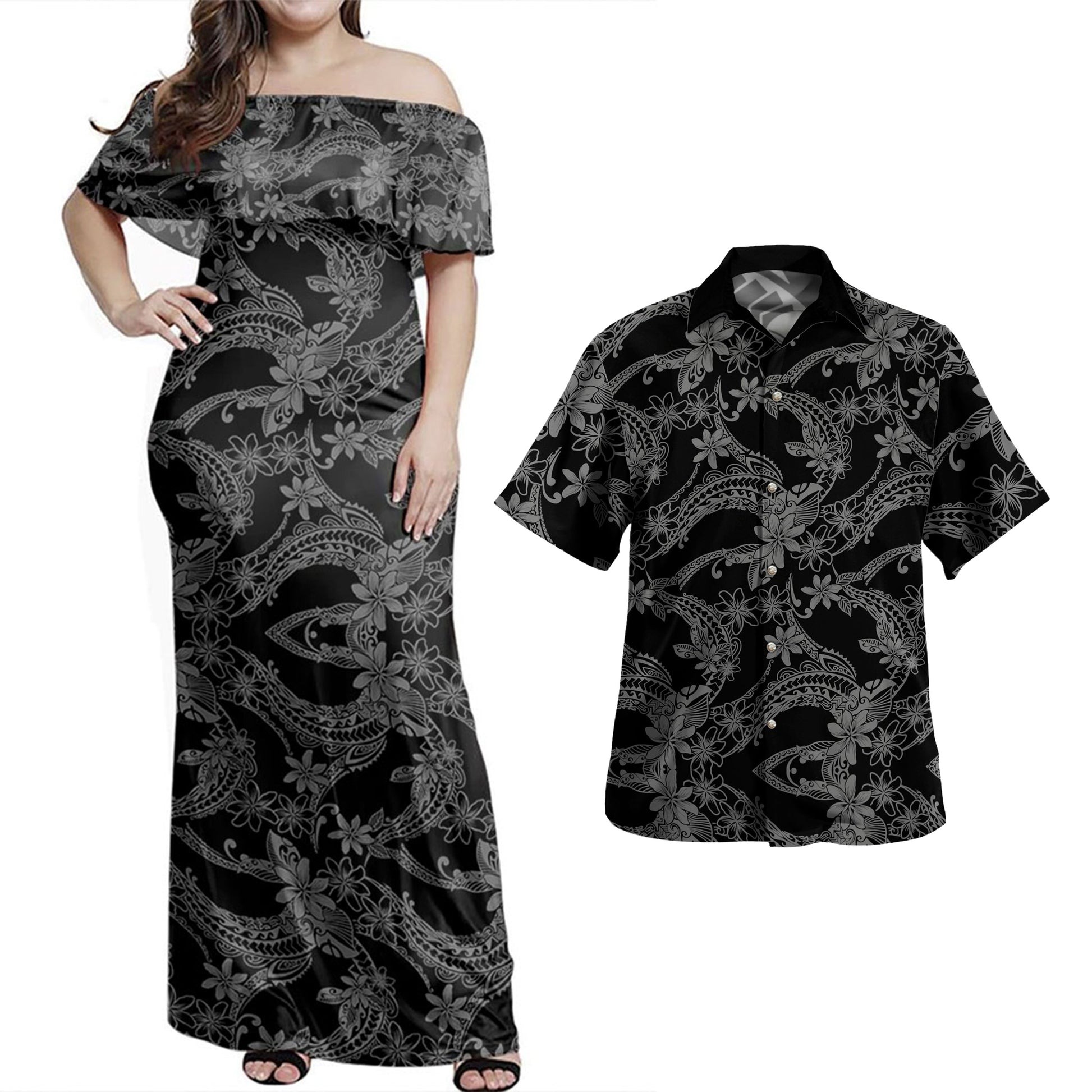 Polynesian Combo Dress And Shirt Polynesian Print Fabric And Flower Ver.1