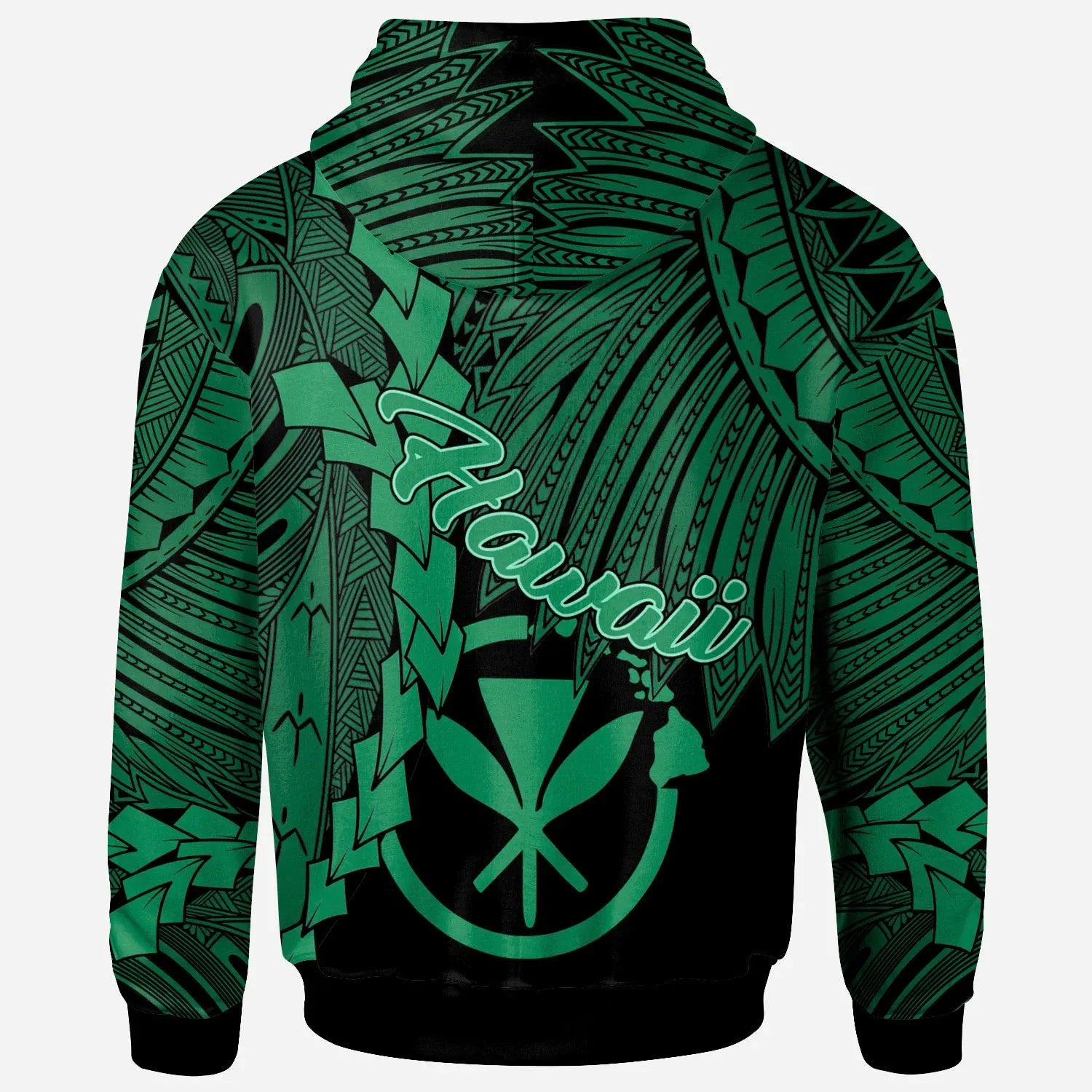 Polynesian Hawaii Hoodie - Tribal Wave Tattoo Green