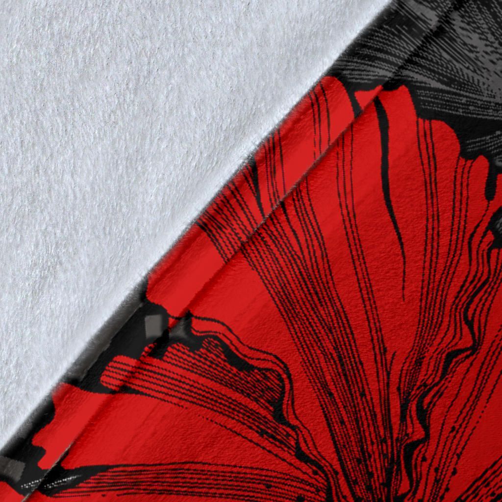 Polynesian Hawaii Premium Blanket - Humpback Whale with Hibiscus (White)