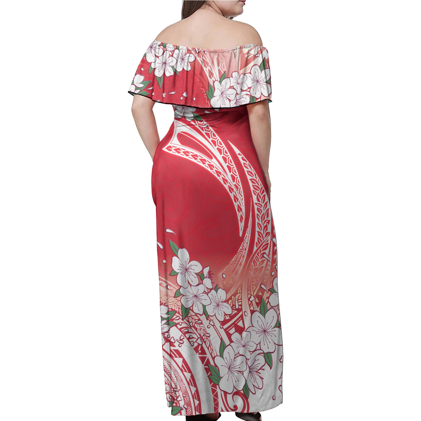 Polynesian Off Shoulder Long Dress Polynesian Pattern Style White Flowers