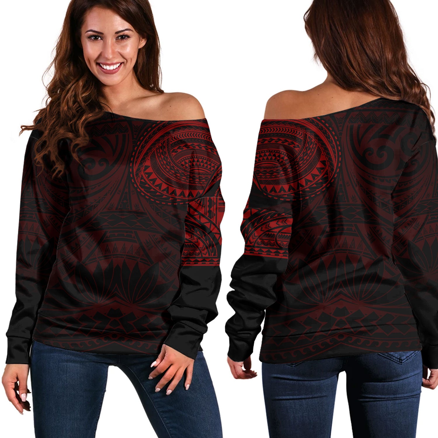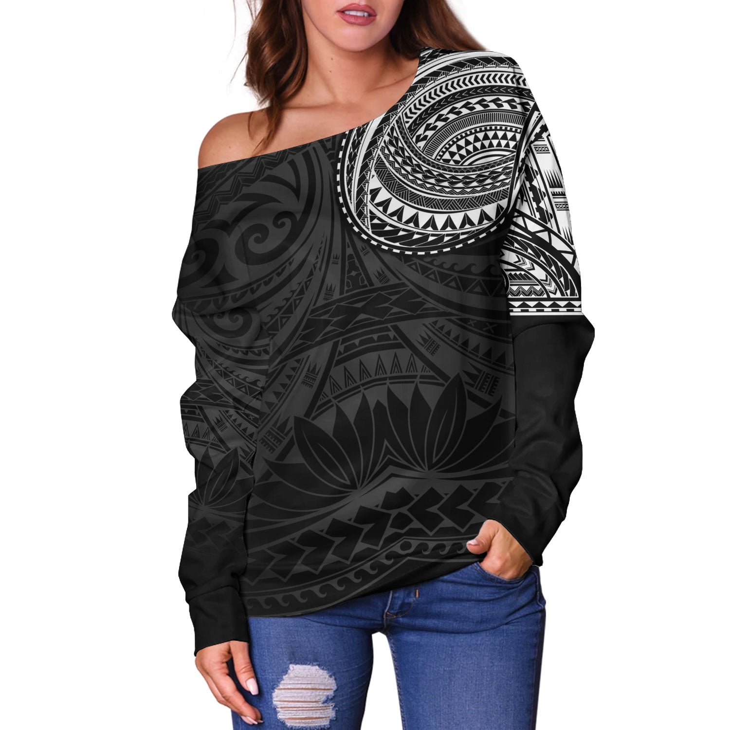 Polynesian Off Shoulder Sweatshirt Polynesian Pattern Special Design