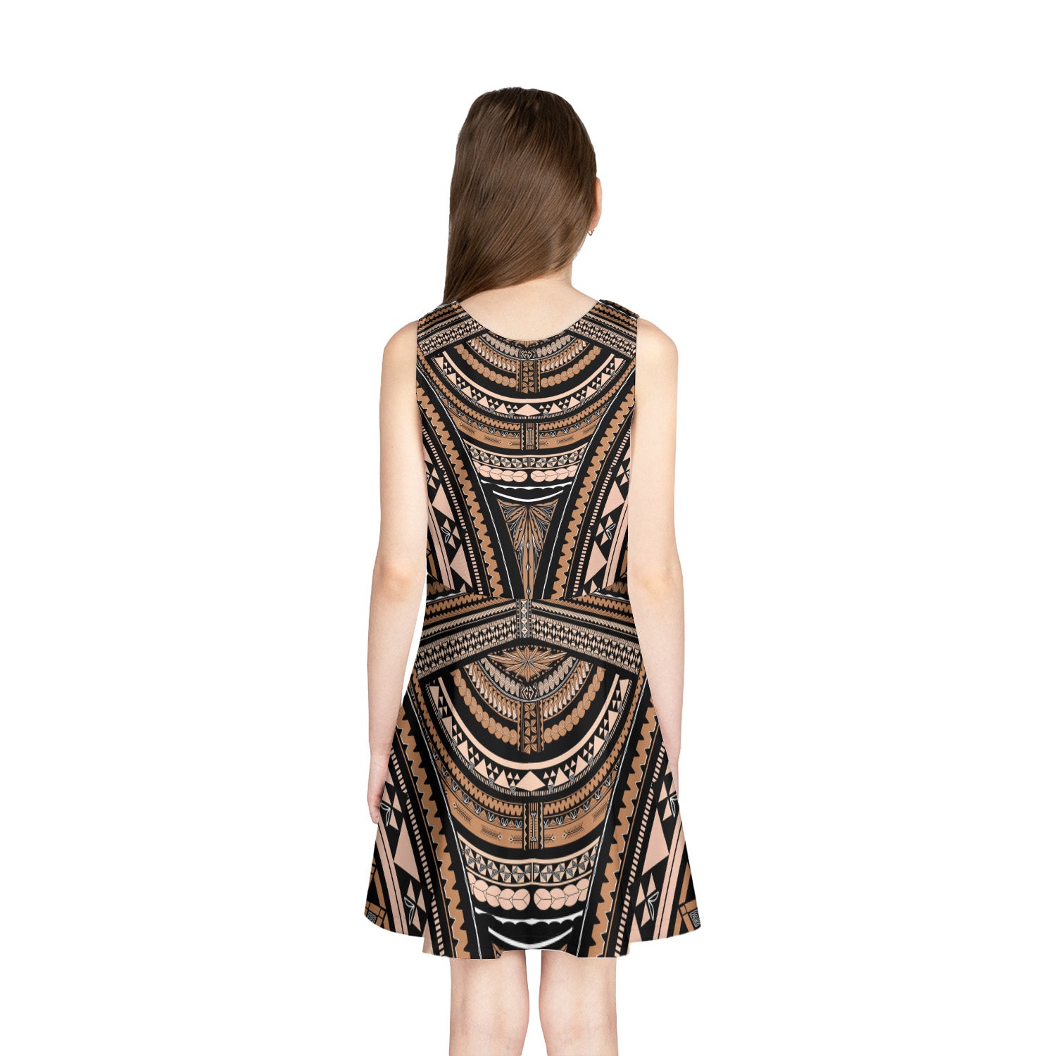 Polynesian Patterns Retro Style Girls Sleeveless Sundress