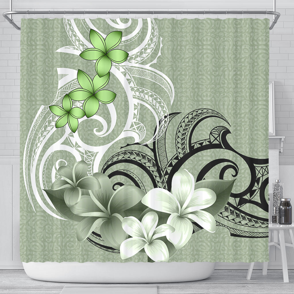 Polynesian Shower Curtain Polynesian Floral Spirit Sage Green