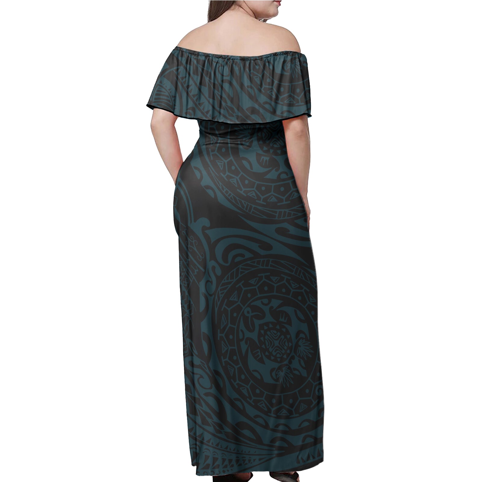 Polynesian Tattoo Style Women Off Shoulder Long Dress Version 2.0