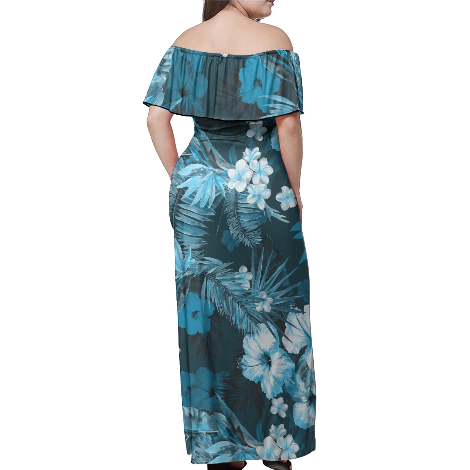 - Our Women Off Shoulder Long Dress made of 85% Polyester and 15% spandex manufactures high-quality thermal-transfer printed products and keeps you comfortable, cool, and dry while you work and play.