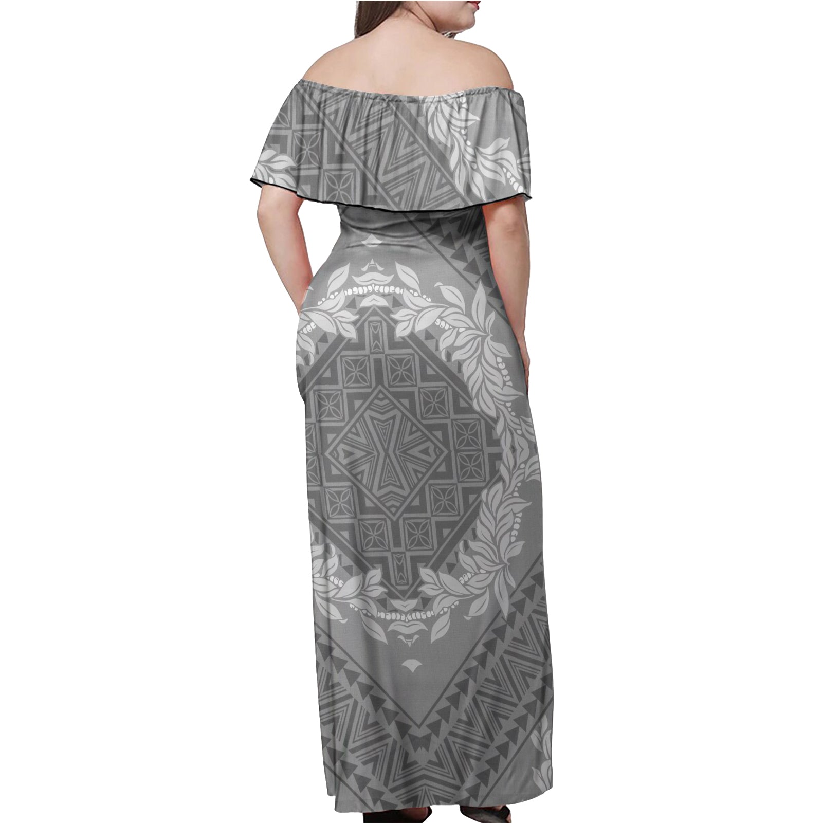 Polynesian Woman Off Shoulder Long Dress - Polynesian Pattern 04