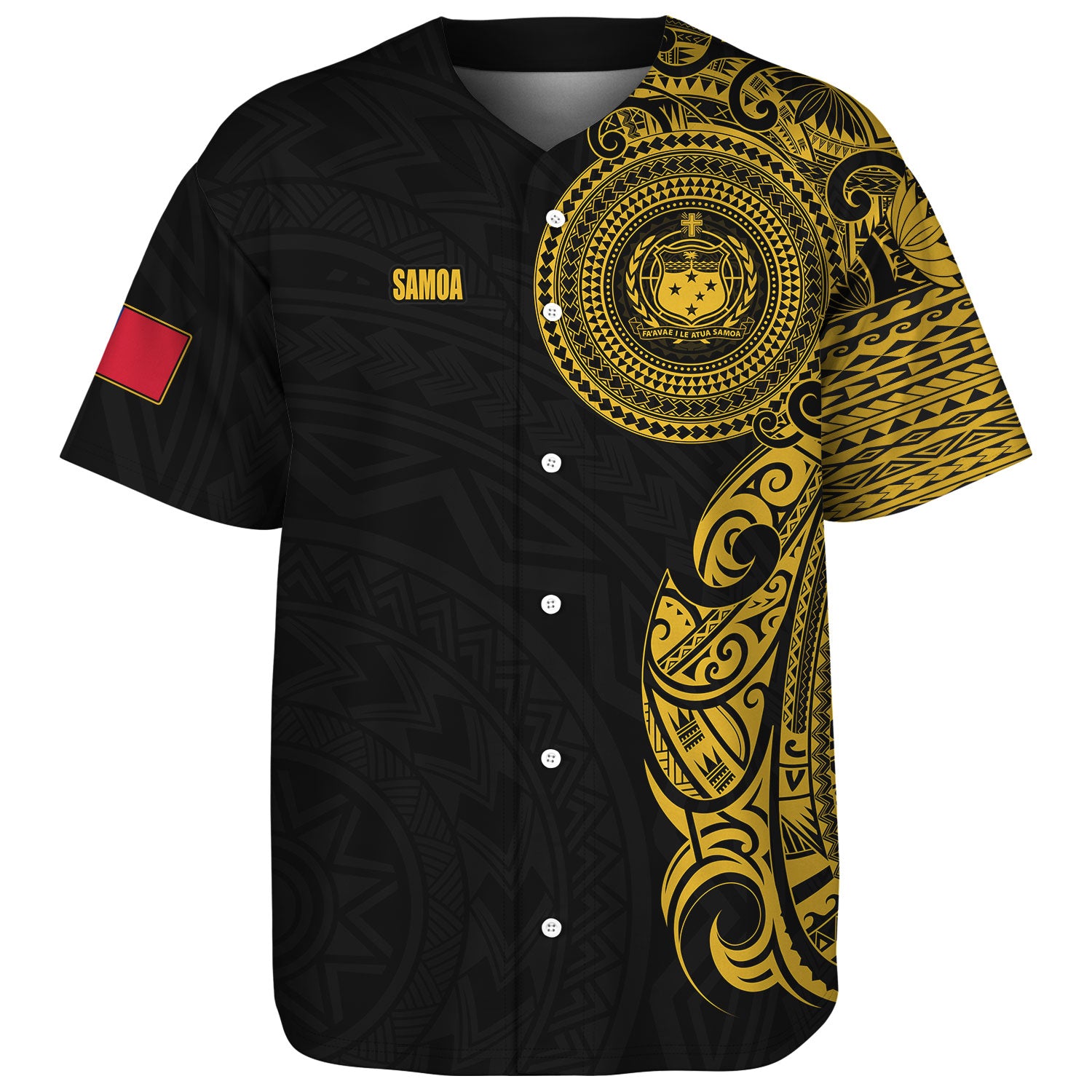 Samoa Baseball Shirt Custom Polynesian Half Sleeve Gold Tattoo With Seal Black