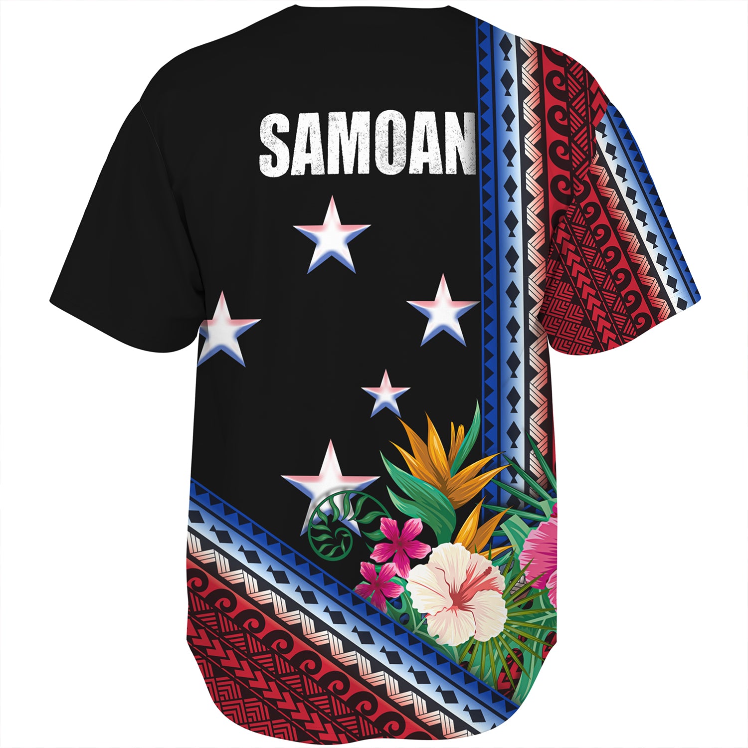 Samoa Baseball Shirt Polynesia Pattern With Tropical Flower